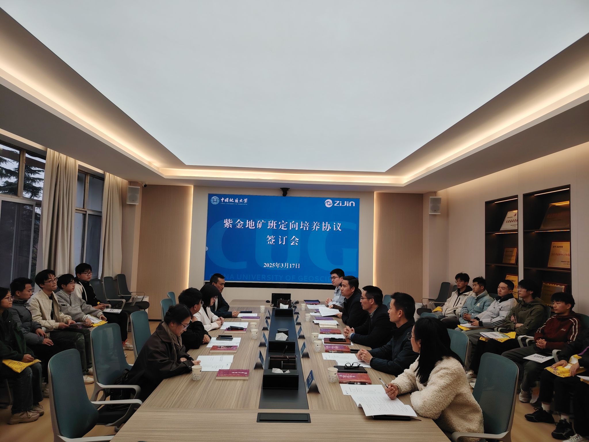 (通讯 柯蓝 李娜娜 摄影 卢倩)2025年3月17日,紫金地矿班定向培养协议签订会在主楼330会议室如期举行。紫金矿业集团股份有限公司人力资源部综合与培训处处长林晞、技能人才处副处长冉金海,本科生院副院长何卫华、肖梦琼,地球科学学院副院长佘振兵、辅导员滕笑丽,beat365中文官方网站院长严德天、副院长李占轲、教务科科长杨春艳、辅导员彭鑫和2024年紫金地矿班全体同学参加会议。会议由李占轲主持。