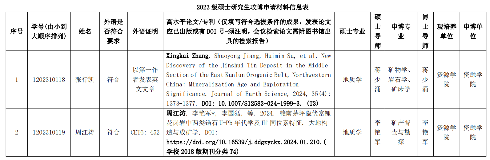经硕士研究生个人申请、导师推荐和学院初审,beat365中文官方网站2023级硕士研究生申请提前攻读博士学位拟推荐名单公示如下。如有异议请公示期内书面反馈意见至学院研究生科(336室)。联系人:赵老师,电话:67883627。