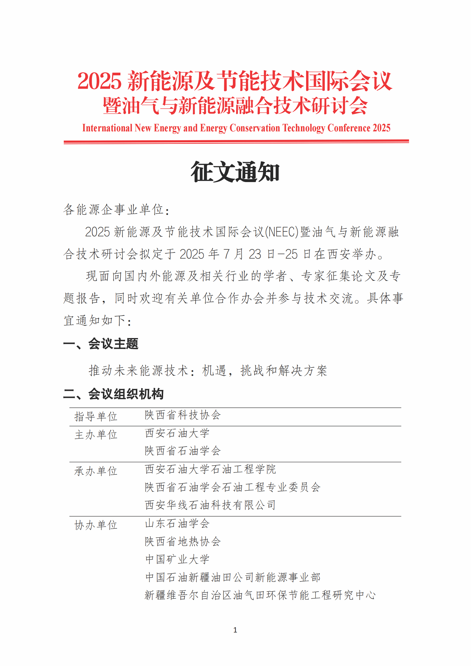 2025新能源及节能技术国际会议暨油气与新能源融合技术研讨会征文通知