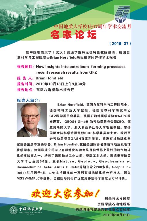 【10月18日】名家论坛2019-37期:Brian Horsfield 院士学术报告