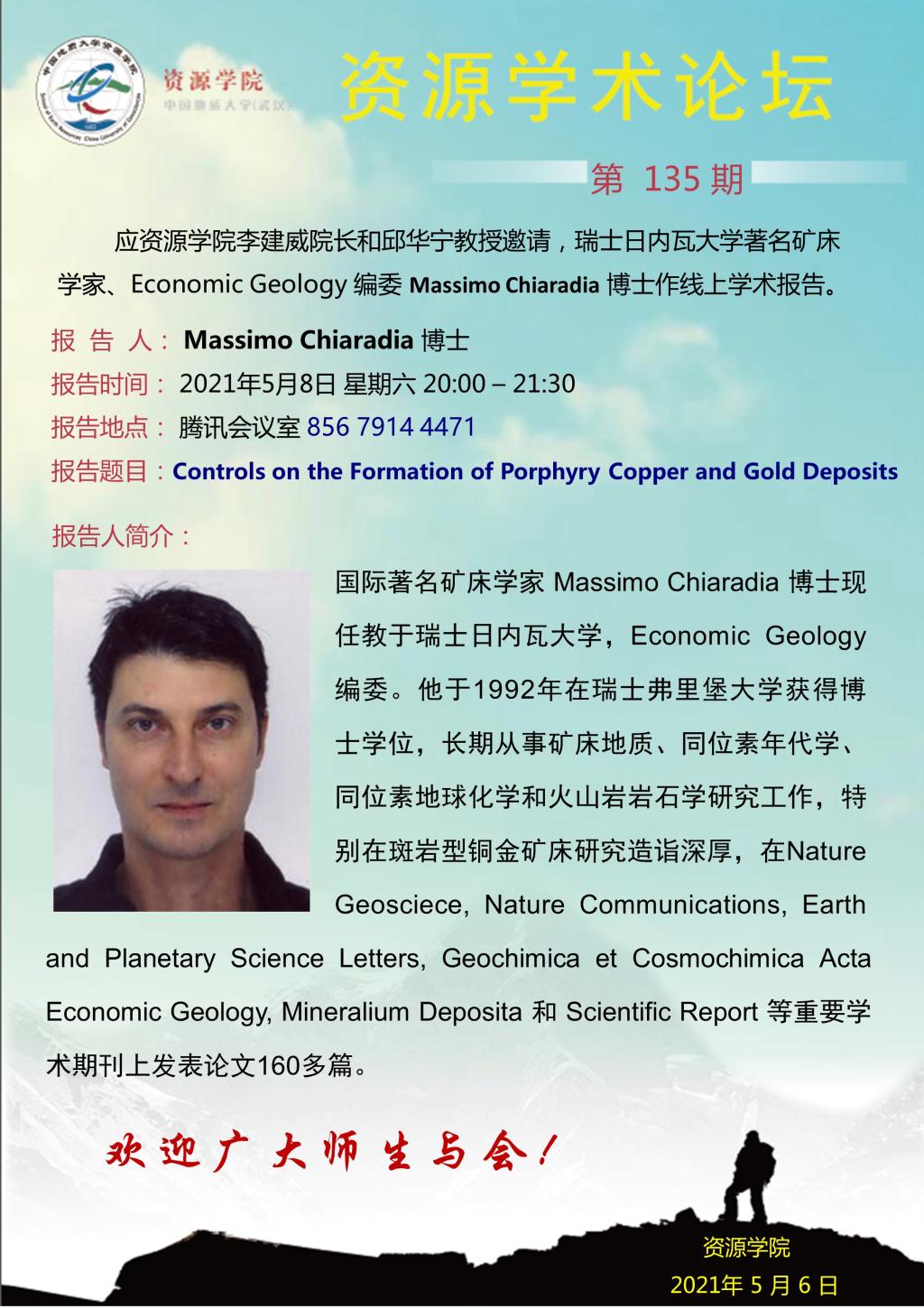 【05月8日】第135期资源学术论坛:Massimo Chiaradia 学术报告