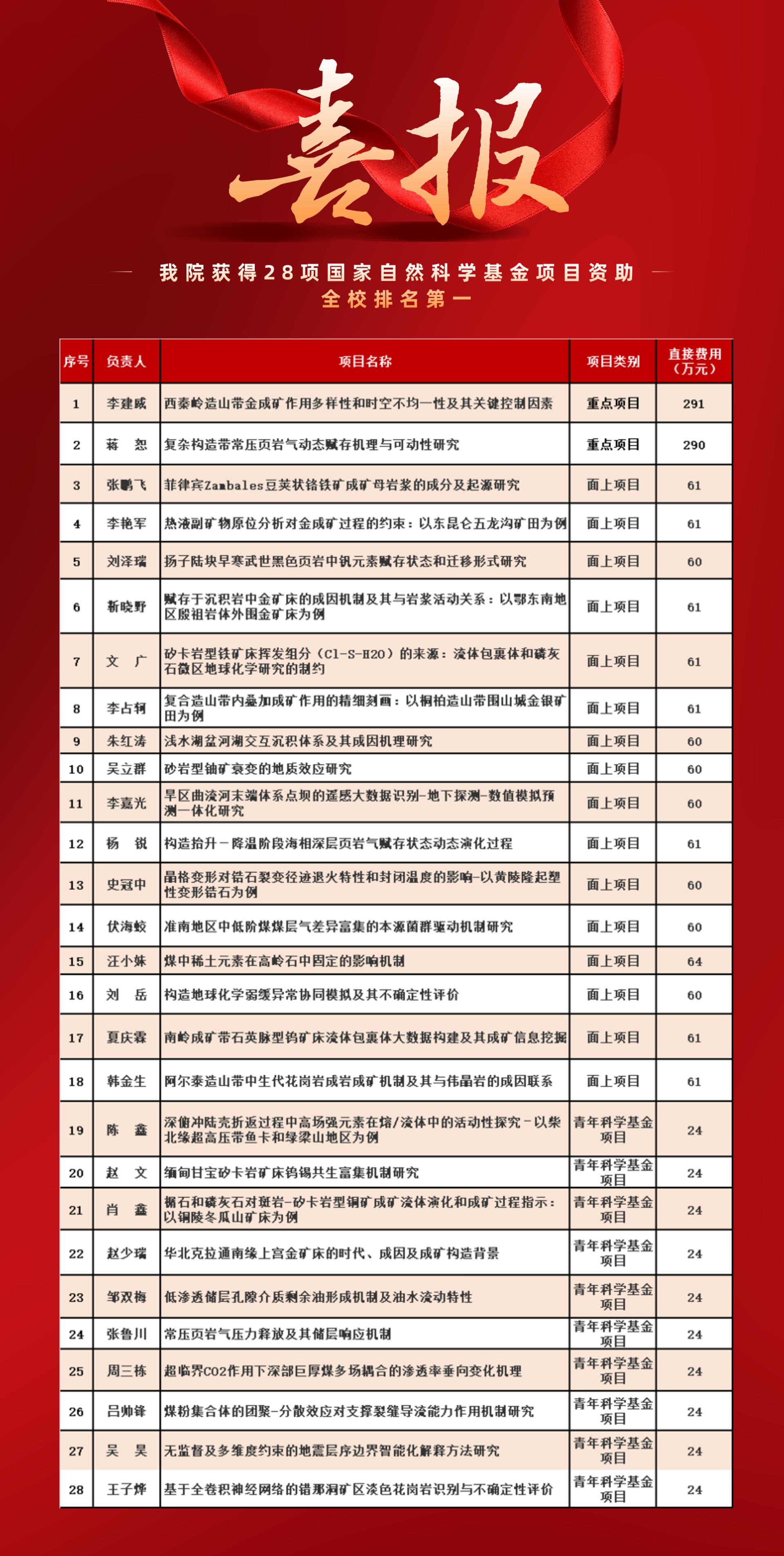 8月18日,国家自然科学基金委员会公布了2021年集中接收期项目评审结果,beat365中文官方网站共有28个项目获得立项资助,再次刷新资助纪录。其中,重点项目2项、面上项目16项、青年科学基金项目10项,直接资助费用共计1793万元。