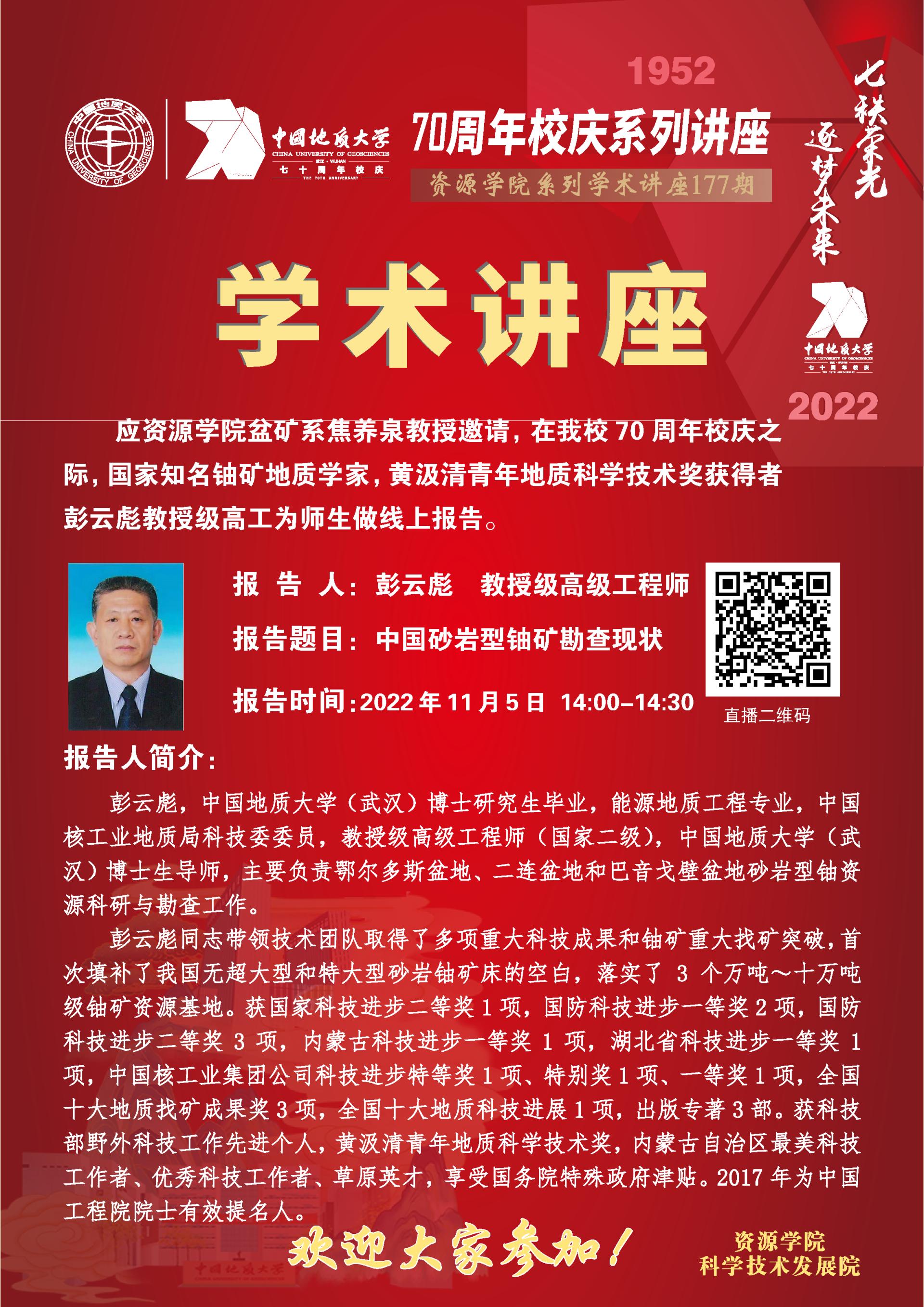 【11月5日】第177期资源学术论坛:彭文彪学术报告
