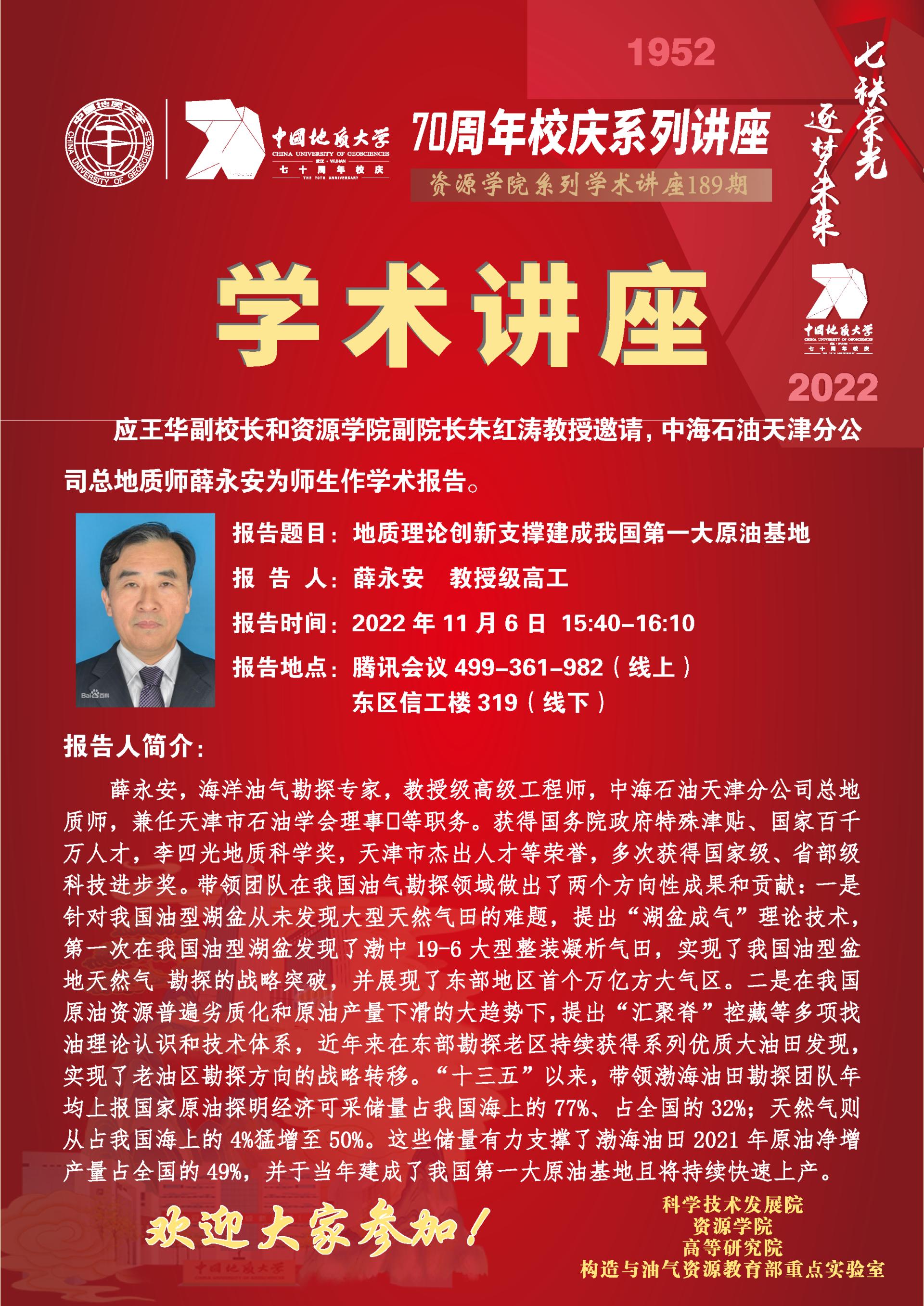 【11月6日】第189期资源学术论坛:薛永安学术报告