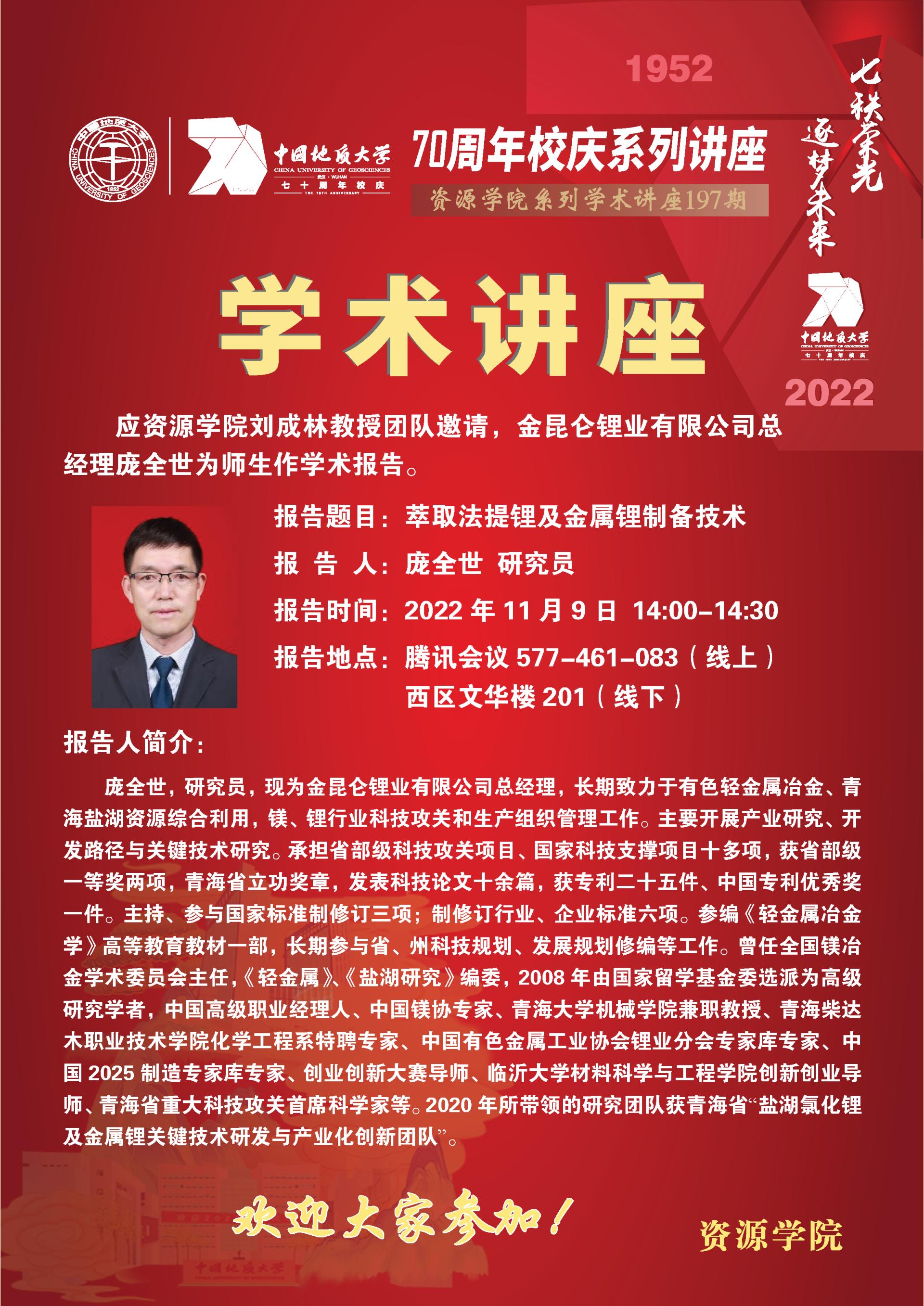 【11月9日】第197期资源学术论坛:庞全世学术报告