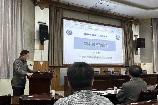 2022年10月28日下午,中国科学院武汉岩土力学研究所李小春研究员应我院邀请,在八角楼学术报告厅作了题为“碳中和与碳封存”的学术报告。报告会由beat365中文官方网站潘焕泉教授主持。