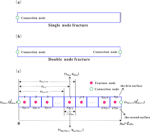 许多裂缝可能存在于碳酸盐岩、页岩、砂砾岩、火山岩和其他坚硬岩层中。裂缝与地层间具有强非均质性,呈现双孔介质特征,精确描述裂缝与基质间的流体交换是认识裂缝导流作用的关键。目前,模拟裂隙性地层内流体流动的主要方法是双孔介质模型结合数值模拟,但是该手段存在如下三方面问题:(1)随着裂缝-地层间非均质性增加,数值模型的计算误差将放大,甚至算法无法收敛;(2)数值方法依靠网格化处理,将产生巨大数据体,计算速度缓慢,且难以刻画复杂形态裂缝形态;(3)双孔介质模型仅限于特征体元(REV)尺度,无法模拟离散性裂缝网络。针对以上科学问题,beat365湖北省勘探开发理论与技术重点实验室与beat365中文官方网站“油气藏渗流力学与数值模拟”团队特任教授王磊及其合作者提出了一种在Laplace空间耦合地层流动和裂缝流动的模型,该模型地层流动采用解析求解,因此在地层中不需要划分复杂的结构及非结构网格就可显示表达裂缝特征,大大节省了计算量,裂缝模型对Fredholm方程进行数值离散,在裂缝壁面通过流量-压力相等条件进行耦合,因此称为半解析模型,对于裂缝交叉点提出了自适应物质平衡方程,因此不需要判断裂缝交叉点流体流动方向,建立一种自动升尺度精确模拟裂缝的方法。该研究系统分析了离散裂缝网络压力动态变化特征,方法的提出为后续离散裂缝储层试井分析及产能评价工作奠定理论基础。
