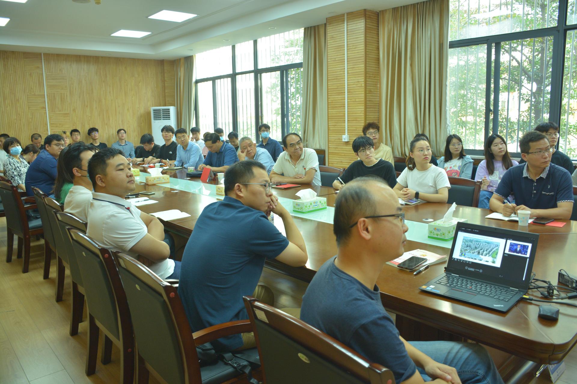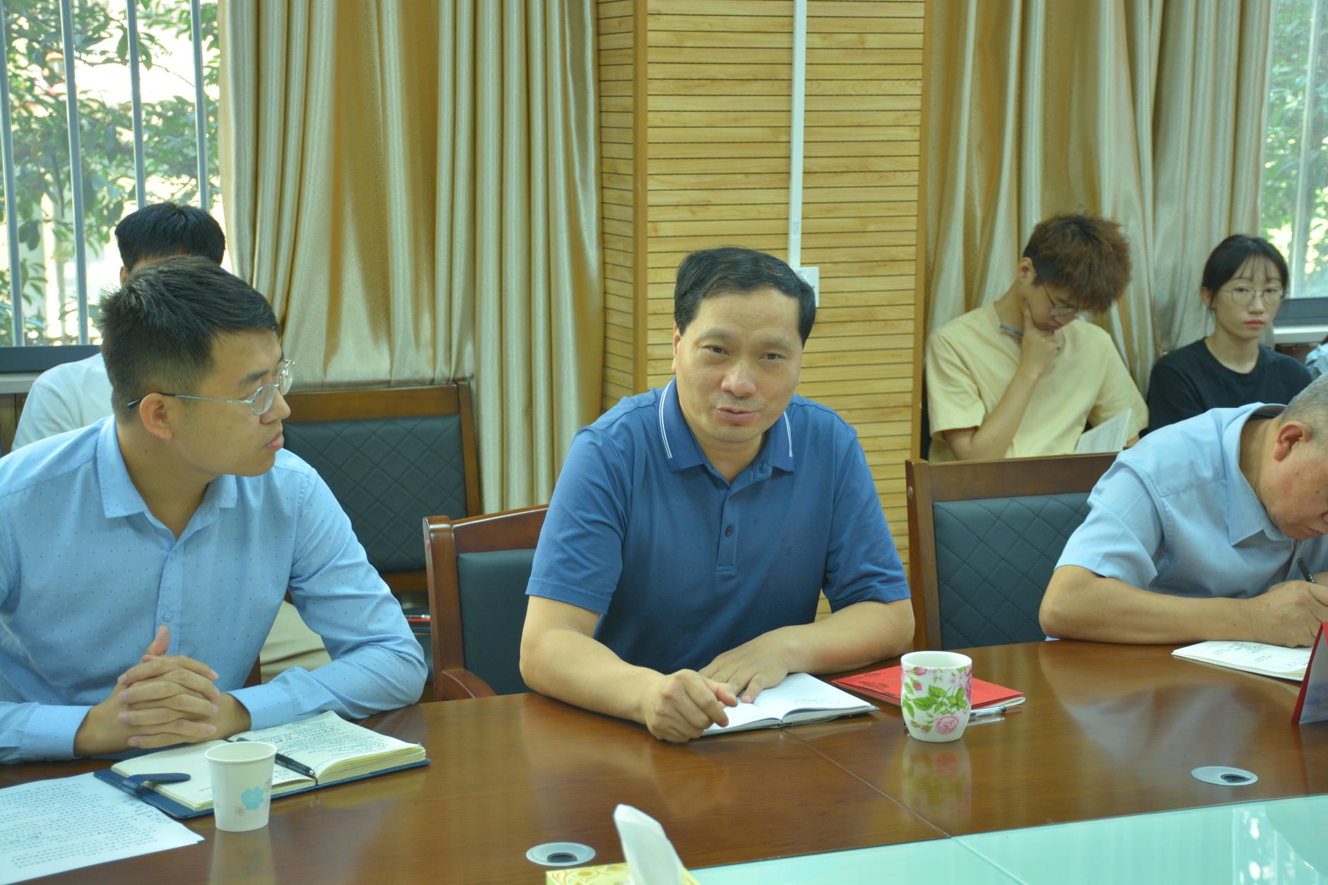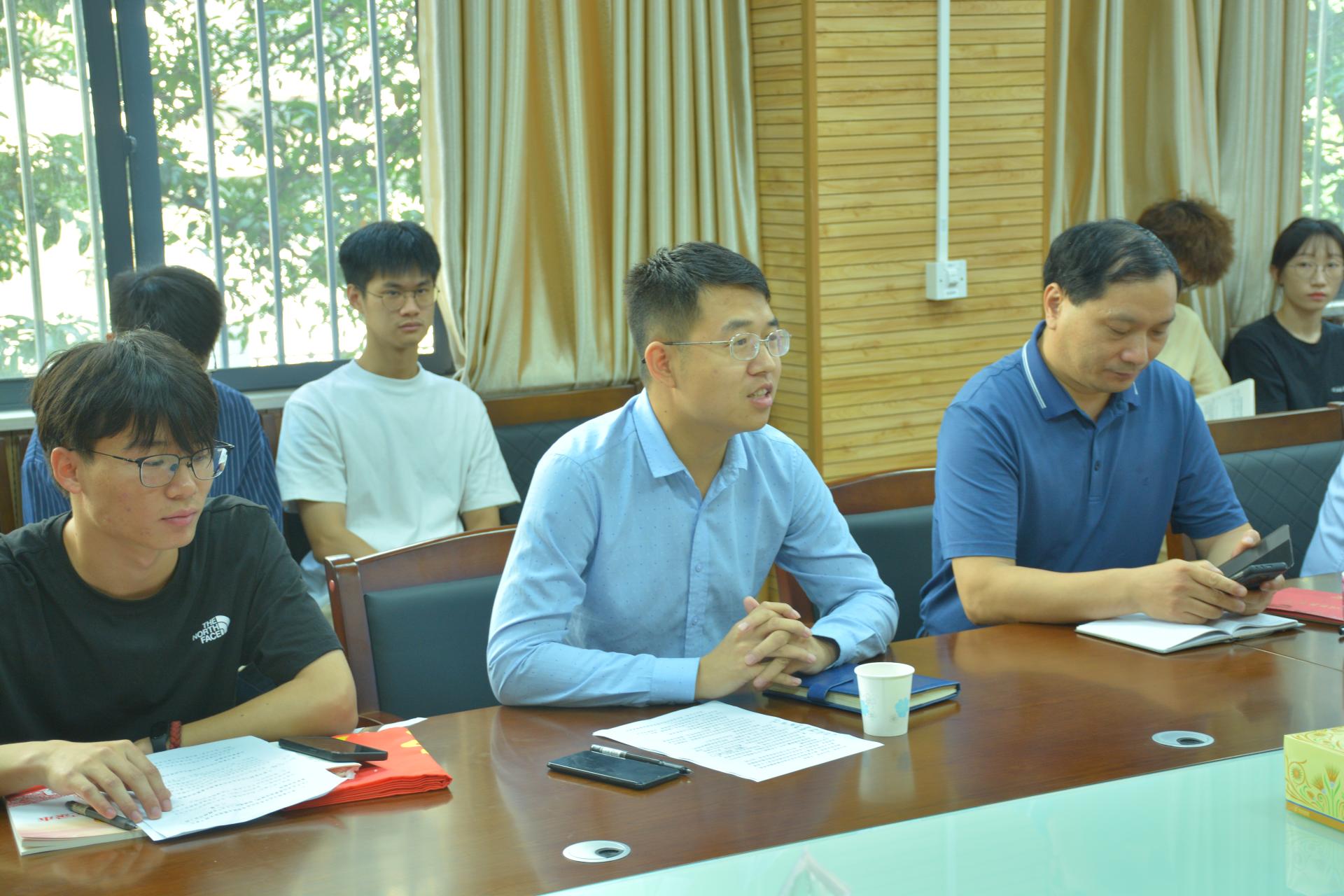 学院党建办公室主任霍少孟讲解学院学生党支部(导学团队)试点方案,介绍资源信息工程系党支部情况及今后党建共创基地建设发展计划。