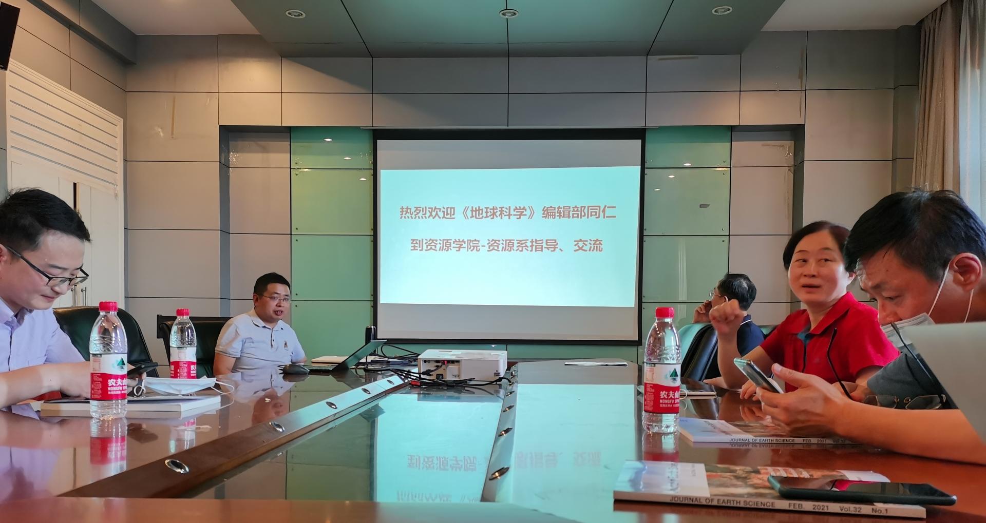 为落实支部品牌创建活动,破解我系和期刊社共同面临的发展难题,会上双方开展了深入交流。王淑华社长表示,地大期刊社与资源系教师一直保持着密切的交流与合作,希望各位老师和学生多向《地球科学》中英文版投递优质稿件。李根主任代表编辑部介绍了《地球科学》、《Journal of Earth Science》的基本情况和取得的成绩,并与同类期刊进行了对比,尤其针对固体矿产类文章分析了存在的差距和问题,并殷切希望老师和同学多关注、多引用、多宣传期刊文章。吕新彪、赵新福、付乐兵、张鹏飞等老师对期刊发展提出了中肯建议,希望期刊社顺应期刊分级评价趋势,充分利用本校师生资源,吸引优质稿源,关注综述类和矿产勘查类文章,积极向知名专家约稿,积极参加国内外重要学术会议,瞄准学术前沿,组织出版重要专辑。