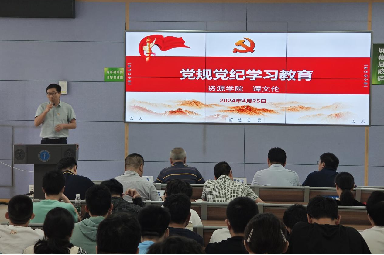 会上,谭文伦讲授党规党纪学习教育主题党课。他讲到,党支部要以“三会一课”、主题党日等形式,积极开展讲党课、学党纪教育活动。他指出,党员同志应认真学习《中国共产党纪律处分条例》,坚持原原本本学、逐章逐条学,紧密联系个人成长进步、学习工作实际学,不断增强纪律意识、规矩意识,把纪律规矩刻印在心,内化为日用而不觉的言行准则,增强政治定力、纪律定力、道德定力、抵腐定力,始终做到忠诚干净担当。