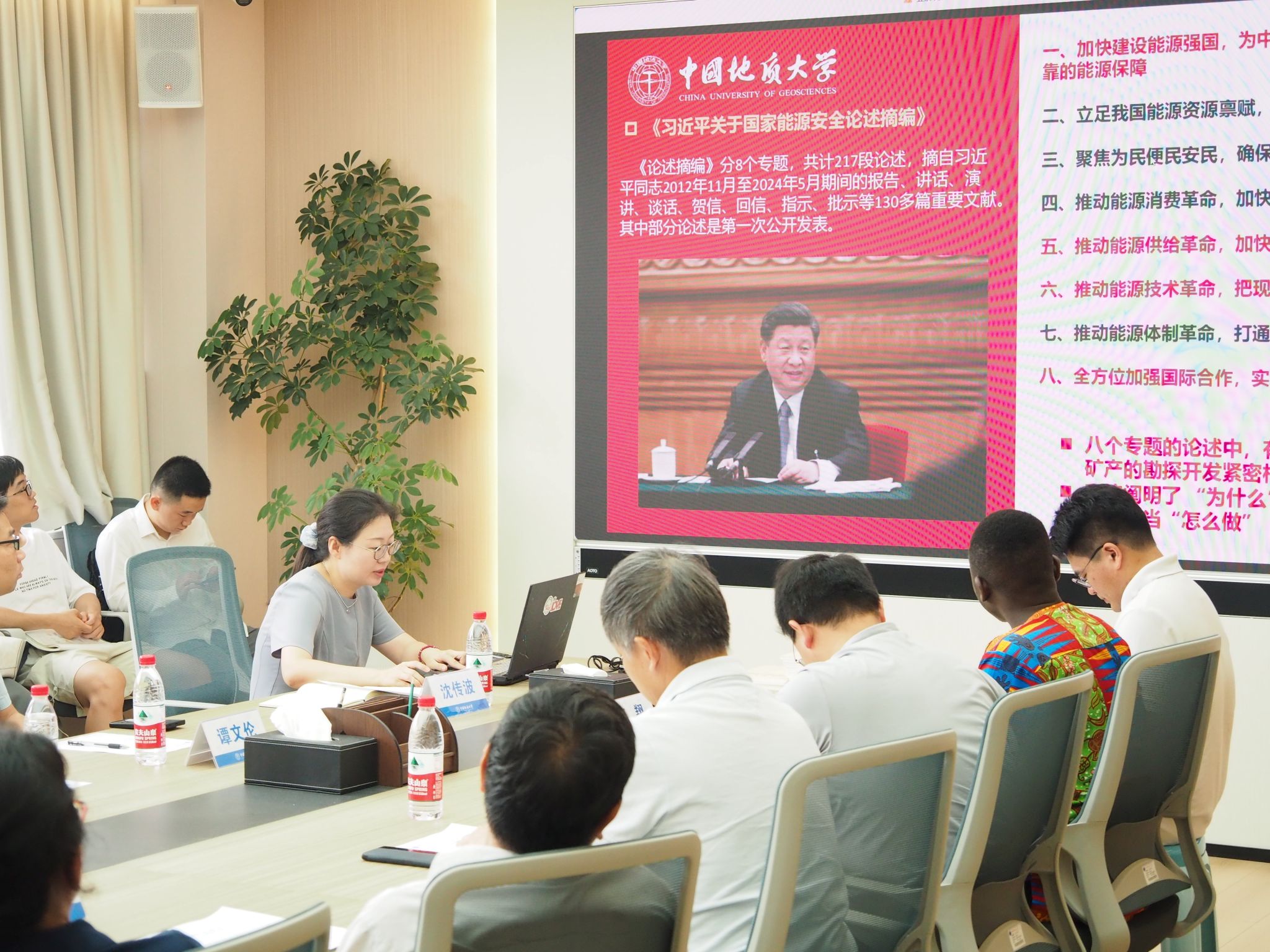 刘昭茜老师领学《习近平关于国家能源安全论述摘编》。她结合《论述摘编》中“能源安全战略与油气资源的重要性”、“油气资源勘探与开发的创新”、“能源供应多元化与油气进口风险”、“油气行业的绿色发展与转型”、“国际能源合作与油气资源的全球布局”五个相关专题,讲述了“能源安全为何重要、我们为什么要建设能源强国、作为beat365中文官方网站的师生应当怎么去建设能源强国”。