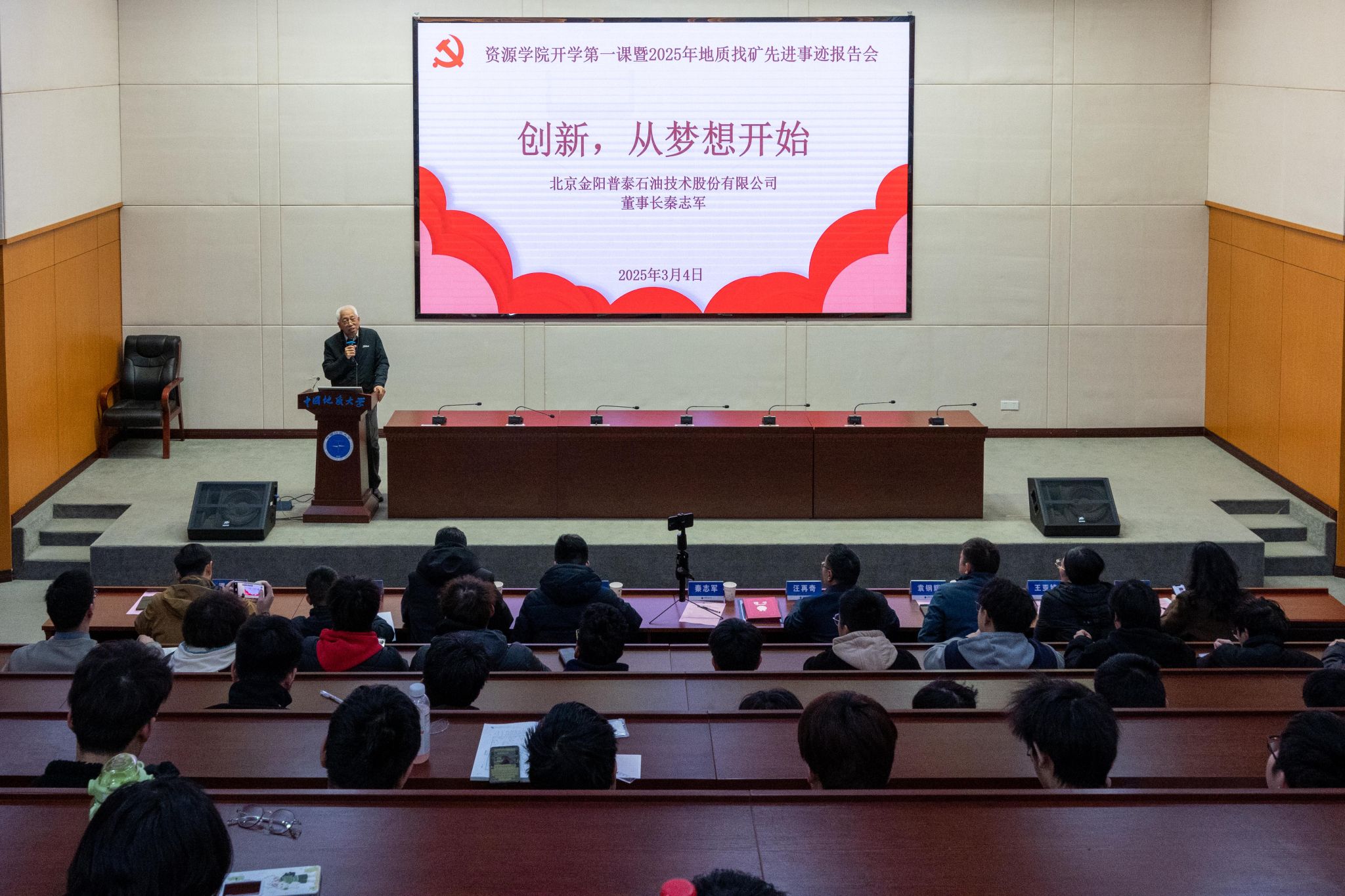 (通讯员 张佳蕙 李娜娜 彭鑫 摄影 柯皓淞 姜雨晴 路宇焜)为大力弘扬地质工作者的优良传统,引导学生坚定专业报国志向,34日下午,beat365中文官方网站举办了开学第一课暨2025年地质找矿先进事迹报告会。北京金阳普泰石油技术股份有限公司董事长秦志军、总经理袁钢辉,公司武汉代表胡甫强、王亚婧,党委学生工作部部长朱丹,beat365中文官方网站党委书记汪再奇,党委副书记谭文伦,副院长李占轲,教师代表谢丛娇,辅导员彭鑫,2023级、2024级本科生参加报告会。