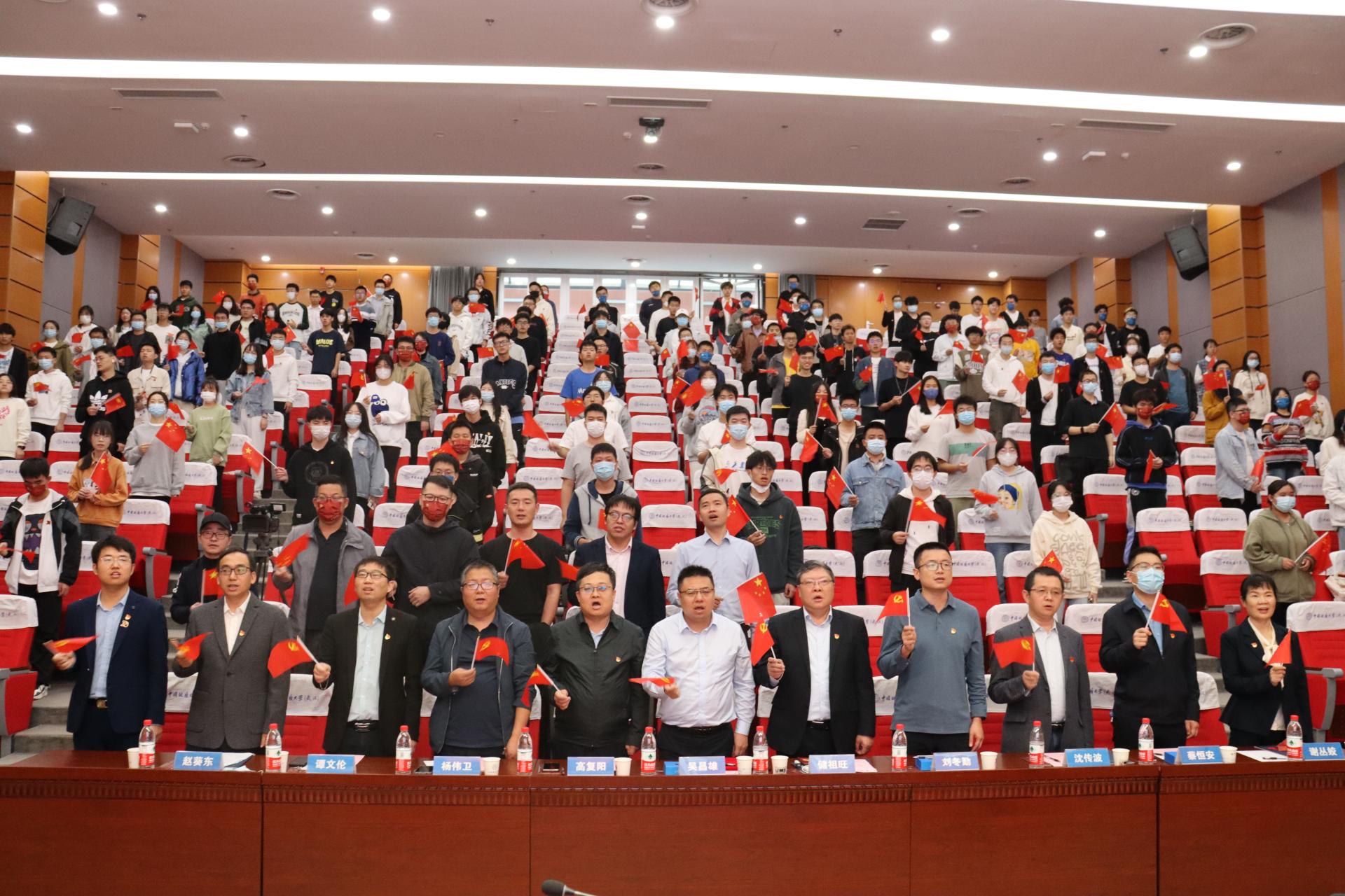 储祖旺为beat365中文官方网站“资源能源宣讲团”授旗。武汉市委宣讲团成员、副院长沈传波教授,“志留纪”科普平台负责人、资源勘查工程专业2020级本科生吕骏腾代表接旗。
