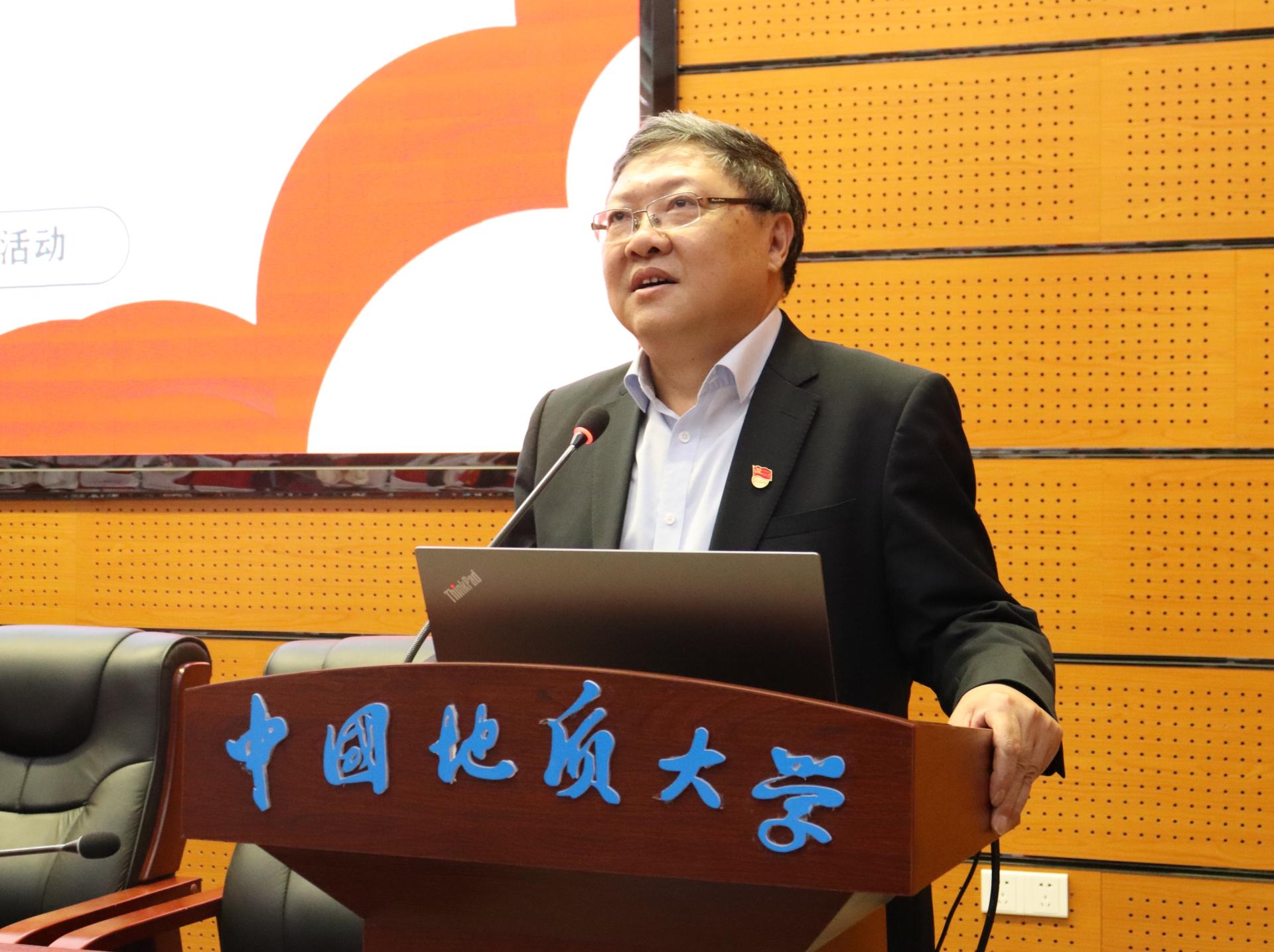 储祖旺总结讲话。他讲到,湖北省地质局第一地质大队始终秉承地质“三光荣”精神,在65年艰苦奋斗中,为国找大矿、找好矿,成效显著,功勋卓越,向一队和长期扎根生产一线的地质工作者表示诚挚敬意。他表示,习近平总书记高度重视能源资源事业,党和国家事业发展向广大地质工作者发出新的召唤,建设社会主义现代化强国需要新时代地质工作者的接续奋斗,地大青年、资源青年干事创业的前景光明、舞台宽广,要珍惜美好时代机遇,发扬优良传统,坚定报国理想,夯实专业本领,勇做有能力、有信心、有情怀的地质工作者。他讲到,beat365中文官方网站党委贯彻落实习近平总书记重要回信精神,举办地质找矿先进事迹报告会、组建资源能源宣讲团,是面向社会、面向学校讲好地大办学故事的重要举措,要认真集中备课、广泛宣讲宣传,争做学校“美丽中国讲师团”中的生力军。他表示,在长久办学历史中,学校坚持开放办学,始终在挑战中前行,为解决区域、行业乃至人类面临的资源环境问题做出了重要贡献;面向新时代,站立建校70周年新起点,学校围绕“共创美丽中国、共建宜居地球”做出战略部署,在全面建设地球科学领域国际知名研究型大学进程中阔步向前。他希望,beat365中文官方网站和湖北省地质局第一地质大队持续深化合作,依托党建联建共创,积极打造校企合作、产教合作新范式,共同为新一轮找矿战略突破行动、为服务国家能源资源事业做出新贡献。