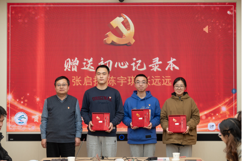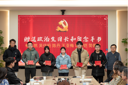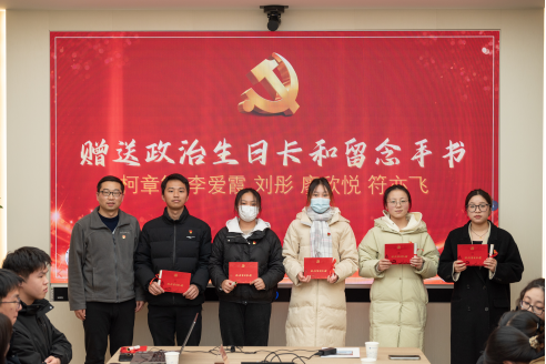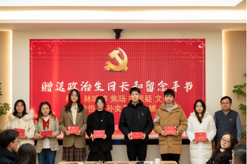 高复阳、谭文伦为新发展党员颁发政治生日卡和“横渠四句”留念手书。