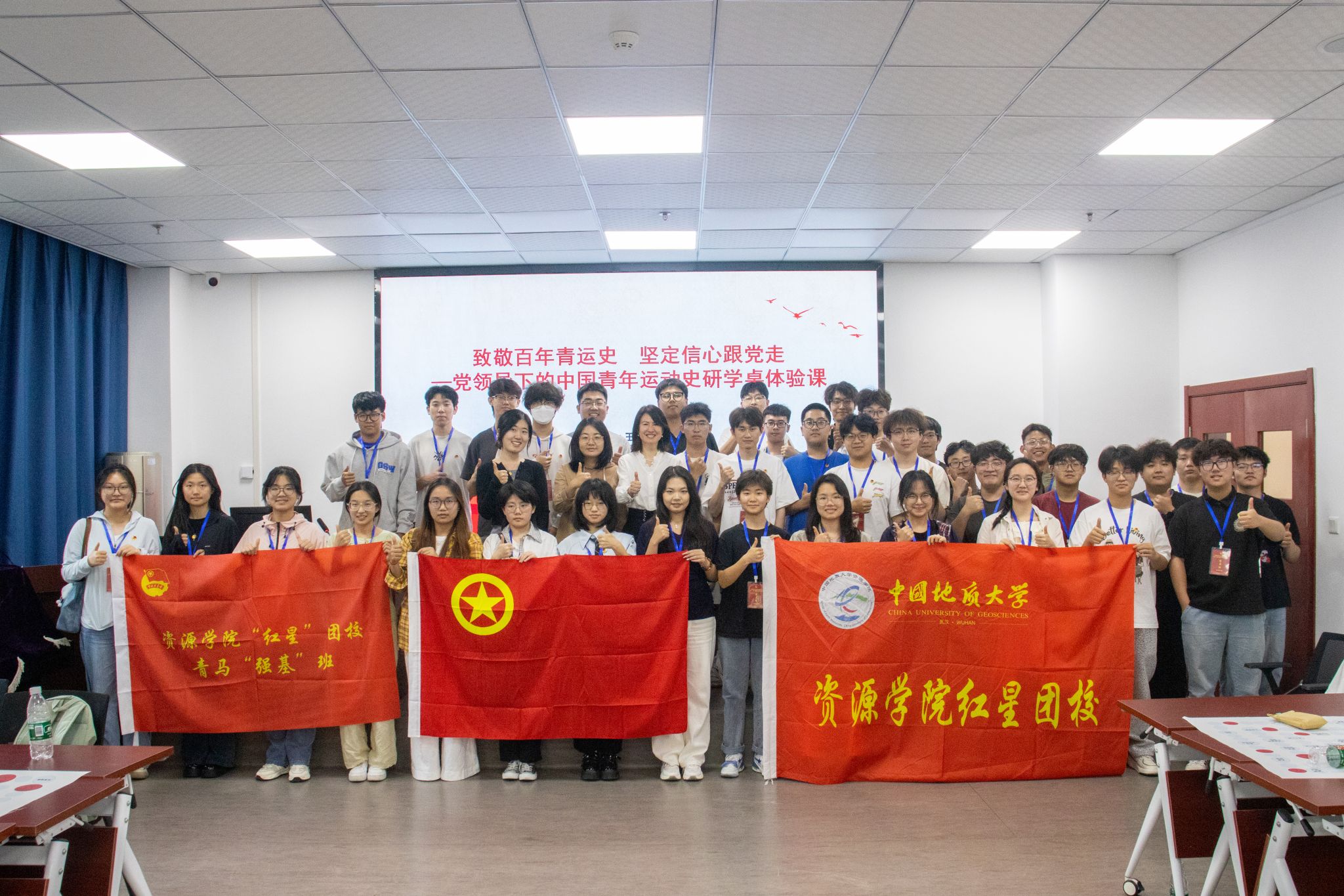 从五四运动的爆发,到共青团的成立;从抗战时期的救亡运动,到新中国成立后的社会主义建设,直至改革开放以来的现代化建设,青年奋斗的身影贯穿始终。参训学员以青运史事件朗读分享、重要历史事件复述等方式,在互动式、沉浸式、情景式的教学中,回顾共青团在不同时期为民族解放、国家建设凝聚青年力量、勇担时代使命的伟大征程,了解中国百年青运史的发展脉络,感悟一代代青年在党的领导下为实现民族复兴而不懈奋斗的如磐初心。