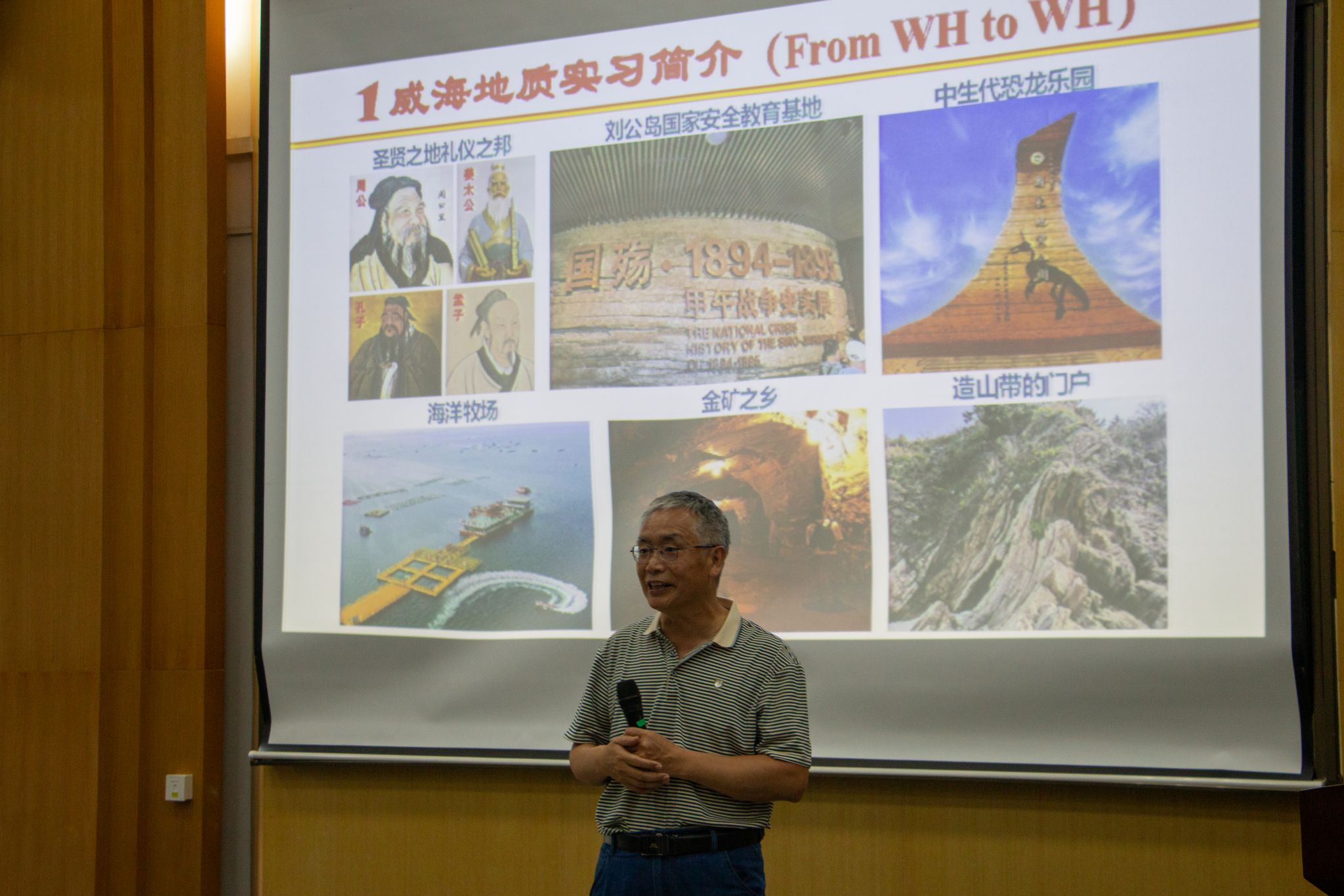 杨香华和董田分别围绕威海和北戴河暑期地质实习开展基本介绍。他们从实习的目的与意义、实习站的建设情况、实习路线的具体安排、实习前期的各项准备工作以及需要特别注意的事项等全面介绍了暑期实习实践的基本情况。他们提醒同学们,暑期地质实习是培养地质“大时空观”思维、锤炼地质技能、训练团结协作能力的机会,要珍惜暑期地质实习的机会,复习好《普通地质学》中的基本知识概念,为顺利完成暑期地质实习打下良好基础。王维结合野外实践教学经历,号召同学们读万卷书,行万里路,只有亲身去实践、去探索,才能真正将所学知识融会贯通,才能拓宽自身的视野,增长见识,提升能力。
