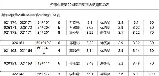 为了进一步加强寝室的优良学风建设,积极响应“学习型宿舍”创建活动。希望通过此次活动能够营造一种文明、团结、奋进的宿舍氛围,将“快乐学习、自主学习”的学习意识在宿舍发扬光大。良好的学习文化是构建“学习型宿舍”的基本要素,在此次活动中我们将致力于改善寝室学习风气,培养好的个人生活习惯,促进宿舍成员的成长与奋进,营造温馨、愉悦的寝室氛围。经审核,以下宿舍结题成功,特此公示。希望结题成功的宿舍继续保持,争取再创辉煌。也希望其他宿舍向这些宿舍学习,争取在下一期活动中结题成功。