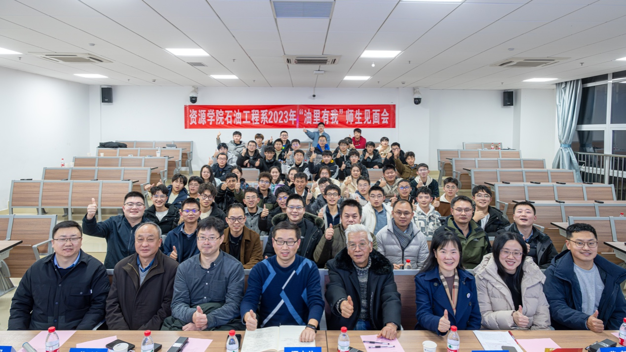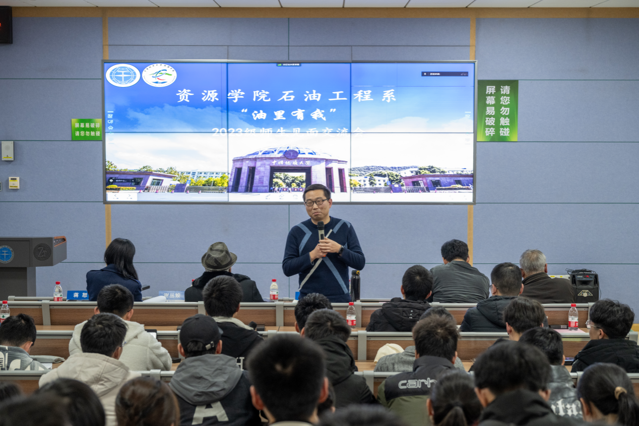 2023年12月27日晚,beat365中文官方网站石油工程系在东区综合教学楼C栋0106举办了“油里有我”2023级本科生师生见面会。此次活动旨在进一步增强学生对专业的认知、增进师生的交流与了解,为学生未来学习与科研打下基础。学校教学监督员马立祥,学院党委副书记谭文伦,石油工程系支部书记谢丛姣、系主任蒋恕及顾军、龚斌等石油工程系全体教师参加会议。石油工程系副主任钟志主持交流会。