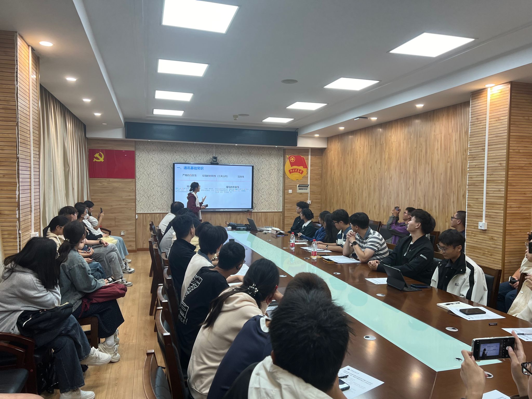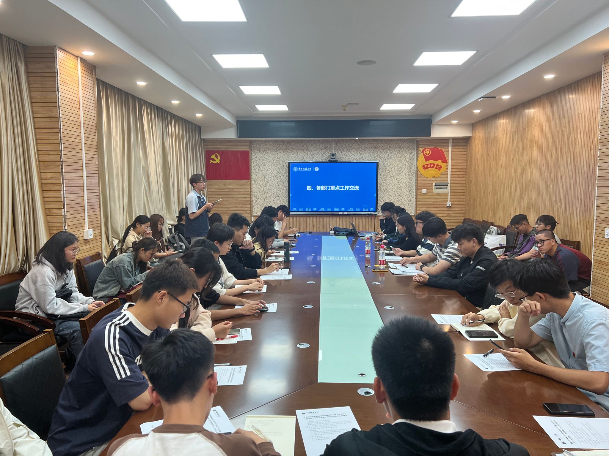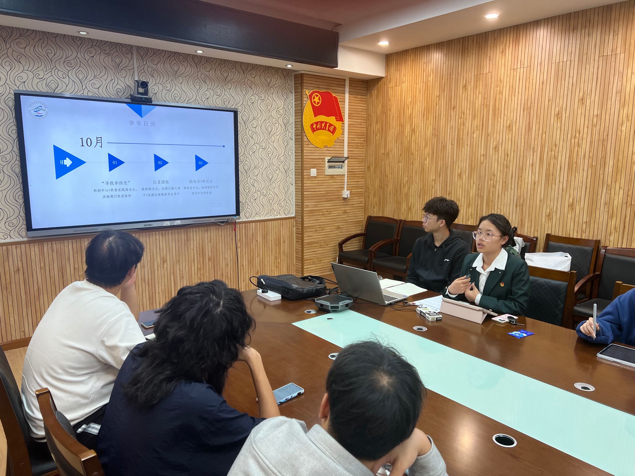 会上,2024届学生会执行主席余慧做《beat365中文官方网站2024-2025学年团学工作介绍》,团委办公室孙钰涵讲解《公文基本写作规范》,各部门负责人就近期重点工作开展交流。