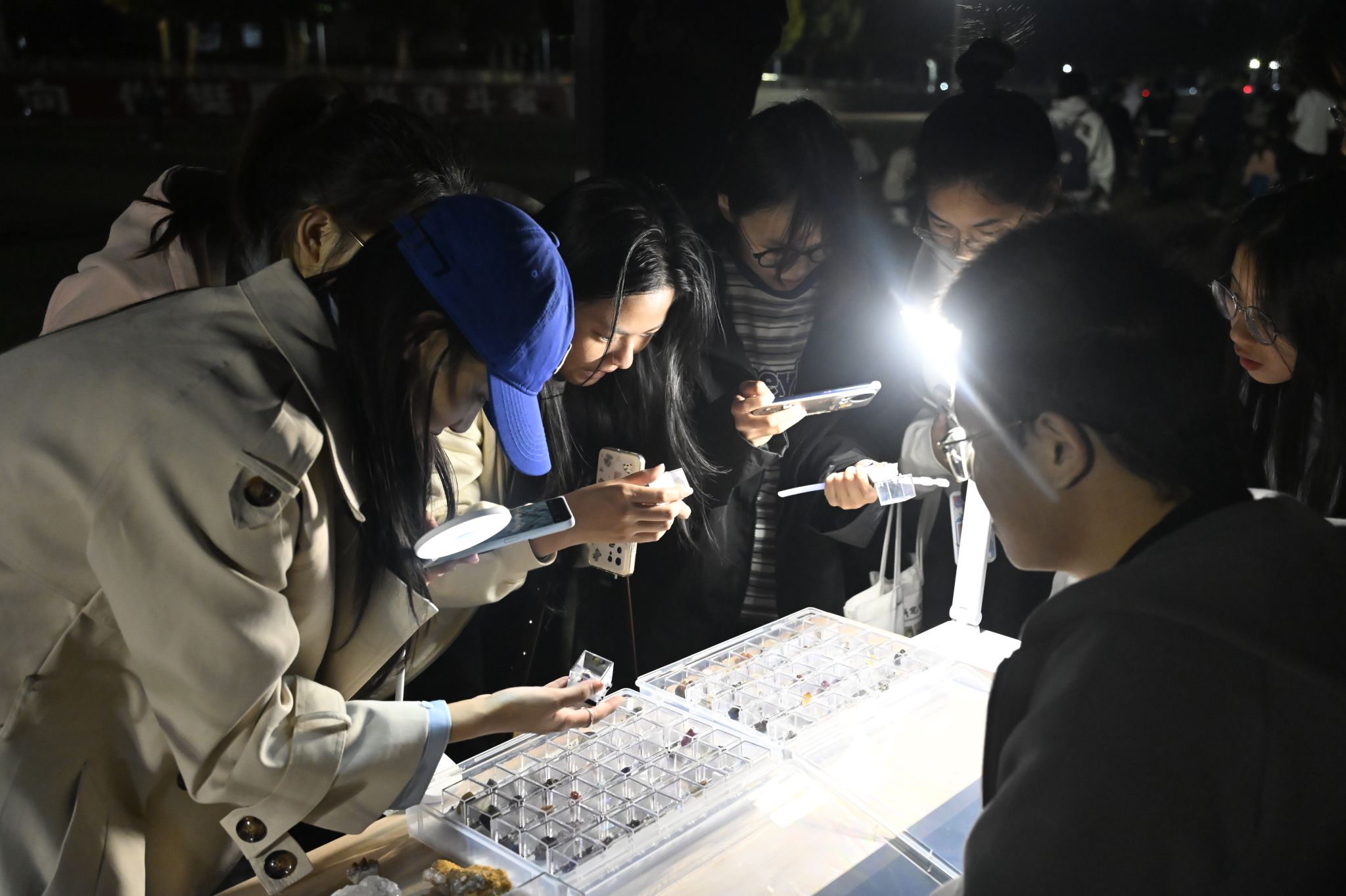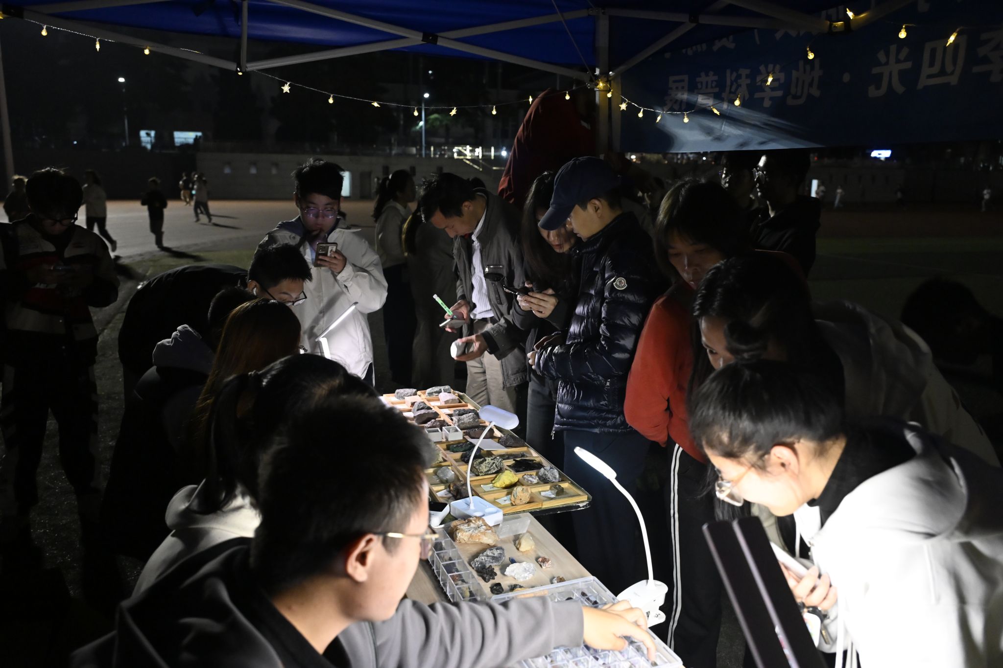 在地学科普展区域,beat365中文官方网站“寻找李四光·地学科普展”吸引了大量师生驻足参观。本次科普展由beat365中文官方网站学生会科普实践部精心筹备,展出了多种珍贵的矿石标本和地质模型,志愿者也为来参观的师生讲解矿石的形成过程、地质特征和用途等。