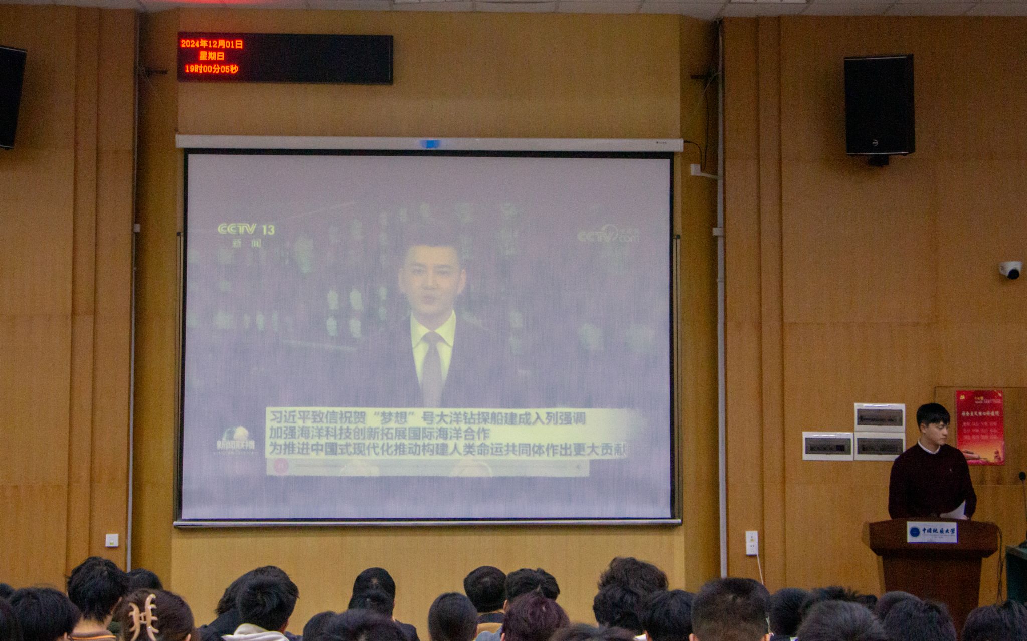 全体师生共同学习了习近平总书记致“梦想”号大洋钻探船建成入列的重要贺信精神。