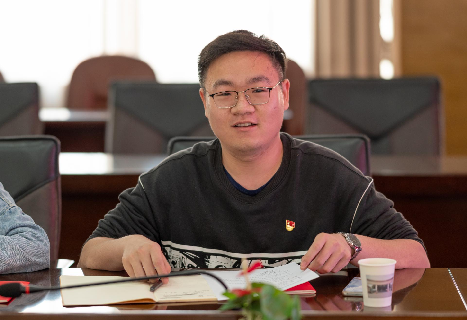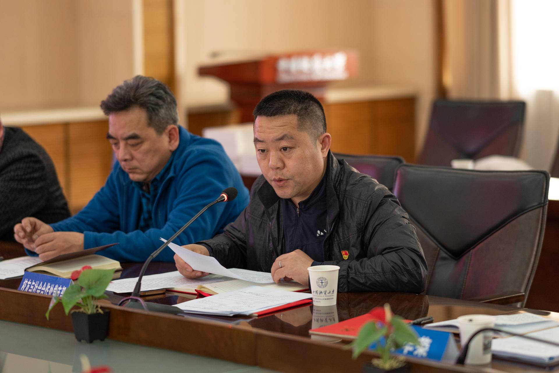 学生党员胡强、李帅平两位同志分享学习心得。他们表示,将践行初心,肩负使命,为国家资源能源事业发挥更大“资源人”作用,将地大精神传承发扬在祖国大好河山,在地质工作中实现人生价值,成就非凡梦想。