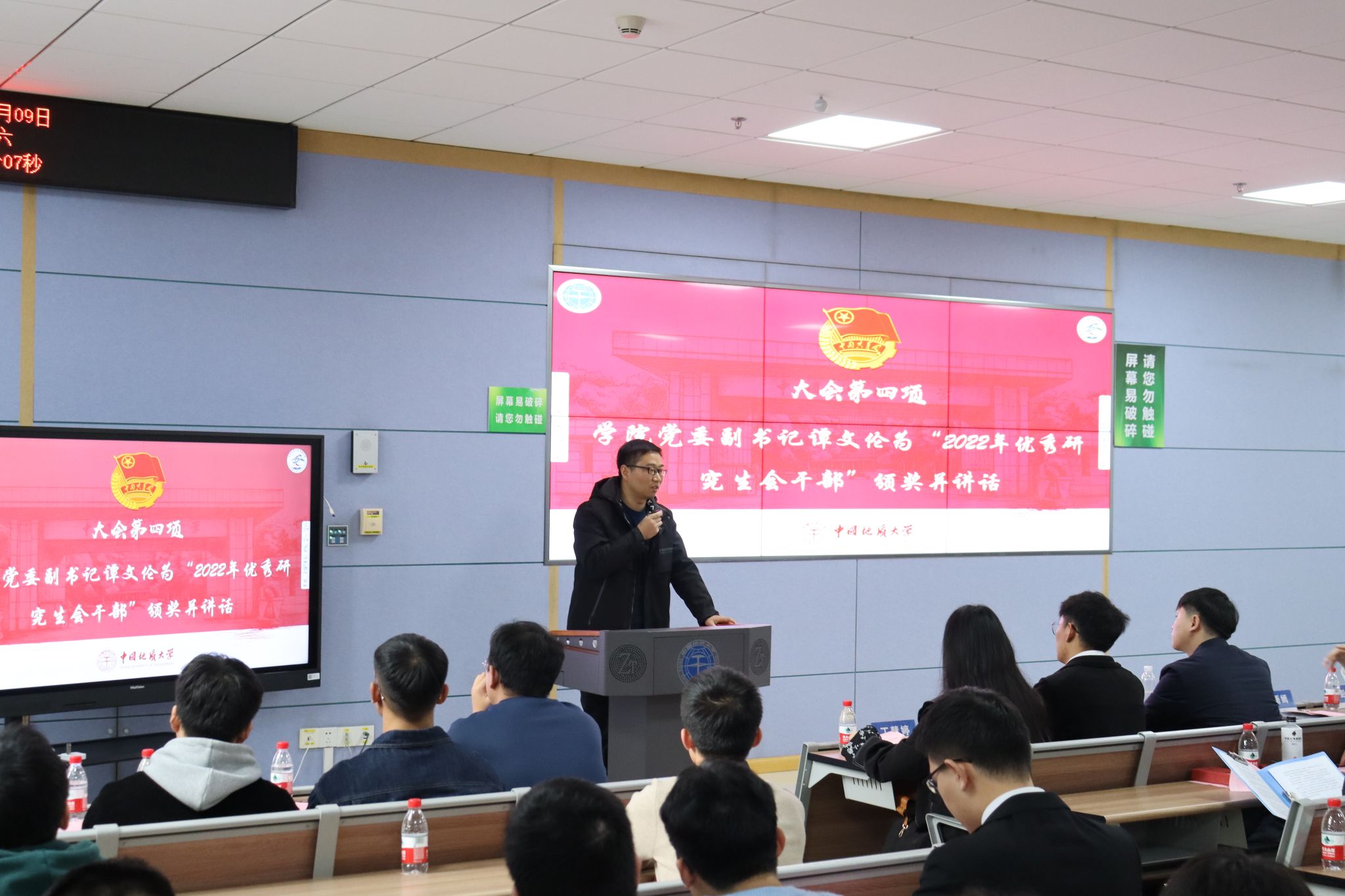 谭文伦为学院“2022年优秀研究生会干部”颁奖。
