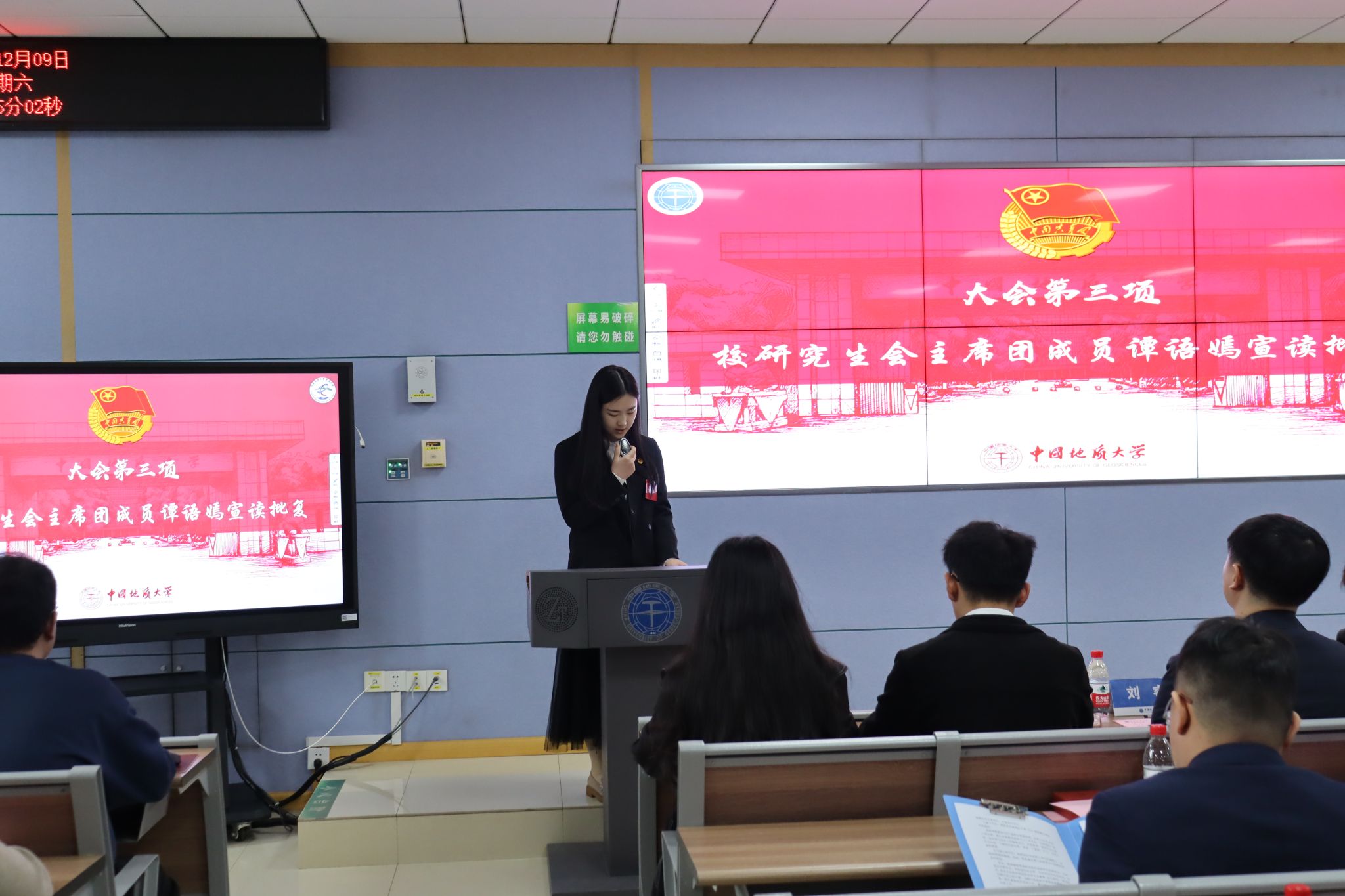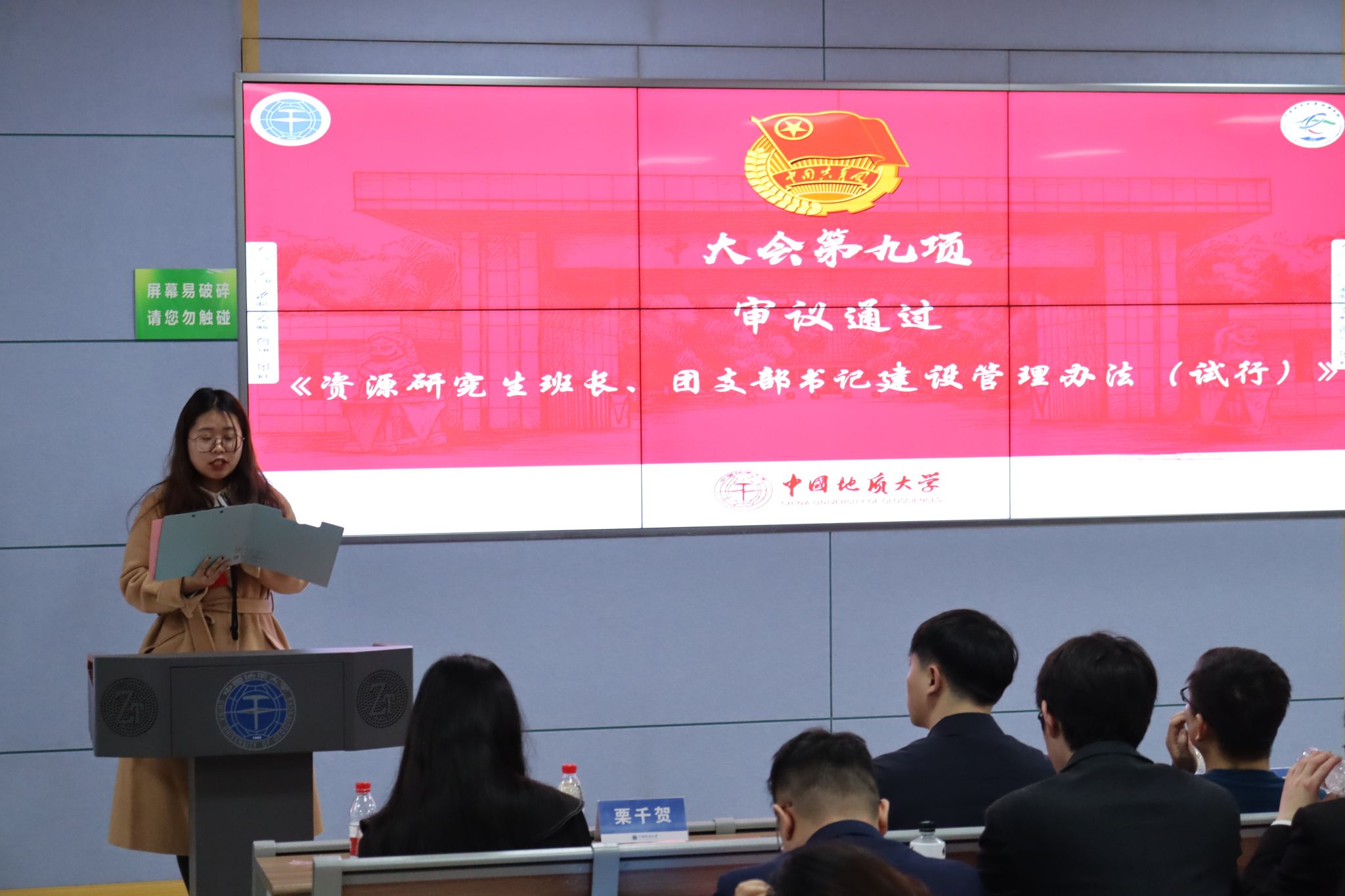 谭语嫣宣读《关于同意召开beat365中文官方网站(武汉)beat365中文官方网站第十二次研究生代表大会的批复》。