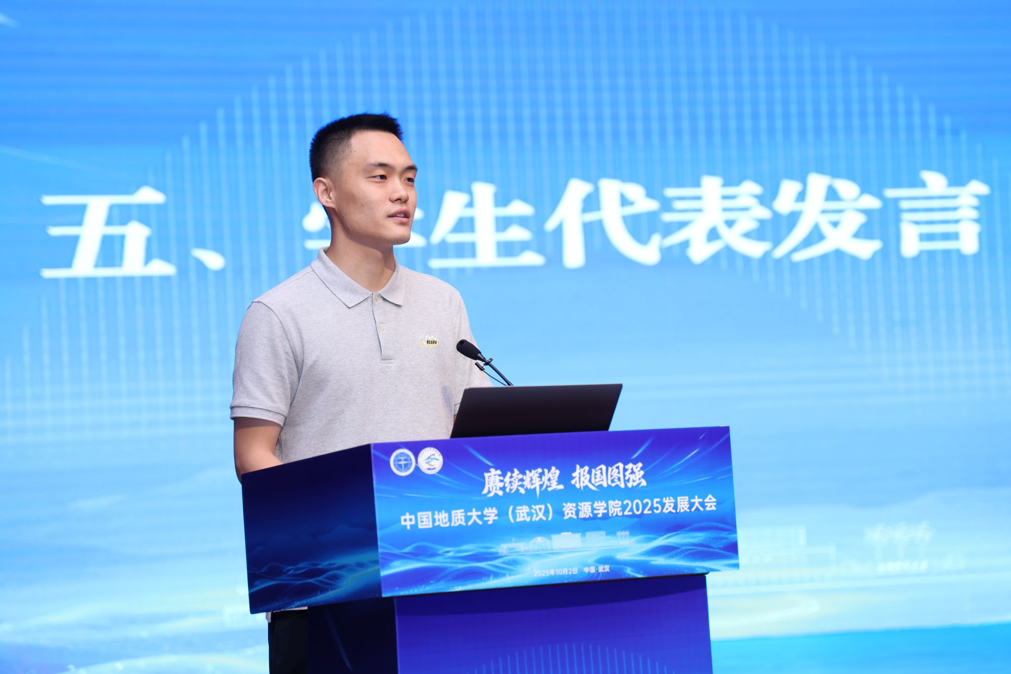 学生代表、beat365中文官方网站2024级博士研究生代表张启扬发言。他结合自身科研实践经历分析了成长体悟,他立志用专业知识服务能源资源安全保障,展现资源人的担当与使命,让青春之花在祖国最需要的地方绽放光彩。