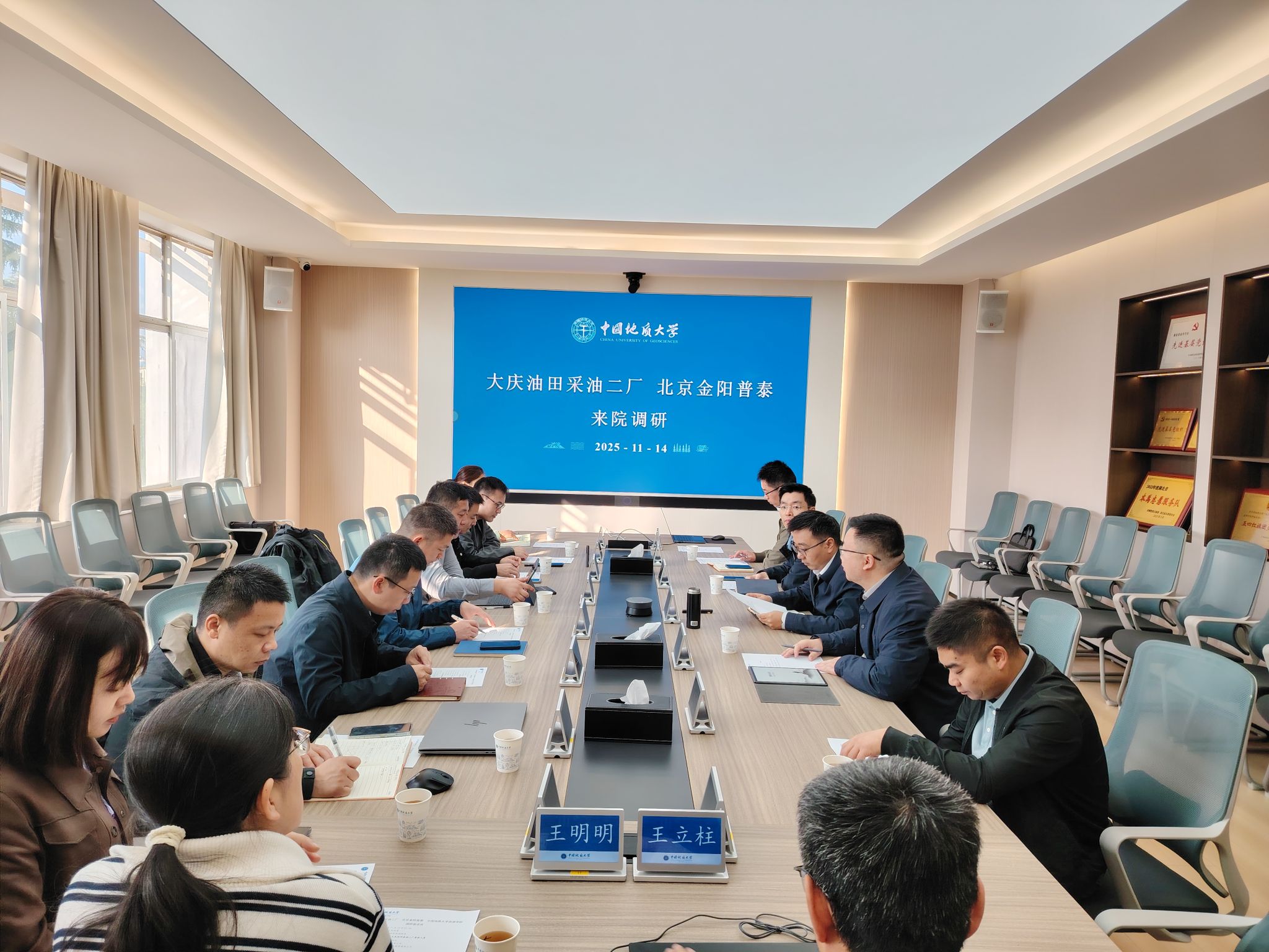 11月14日,大庆油田采油二厂地质研究所副所长吴科俭、北京金阳普泰石油技术股份有限公司总经理袁钢辉一行来院调研,三方围绕进一步深化务实合作举行座谈交流。beat365中文官方网站党委书记汪再奇、副院长钟志,三方单位相关部门负责人及教师代表参加座谈。钟志主持会议。