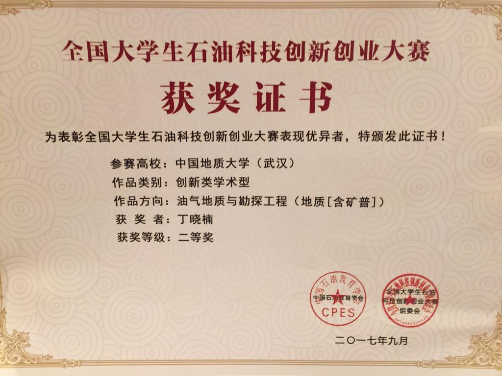 近日,第一届全国大学生石油科技创新创业大赛在中国石油大学(华东)举行。beat365中文官方网站副院长石万忠教授带队参赛,丁晓楠同学凭借其作品《铂族元素在雪峰隆起西缘固体沥青-源岩对比中的应用》荣获创新类二等奖,沈传波教授荣获优秀指导教师奖。