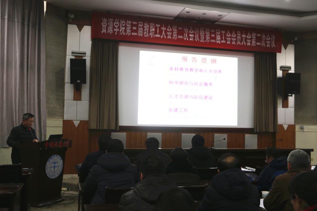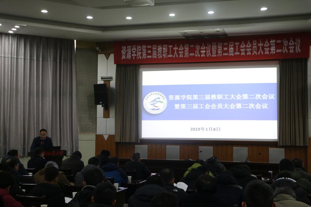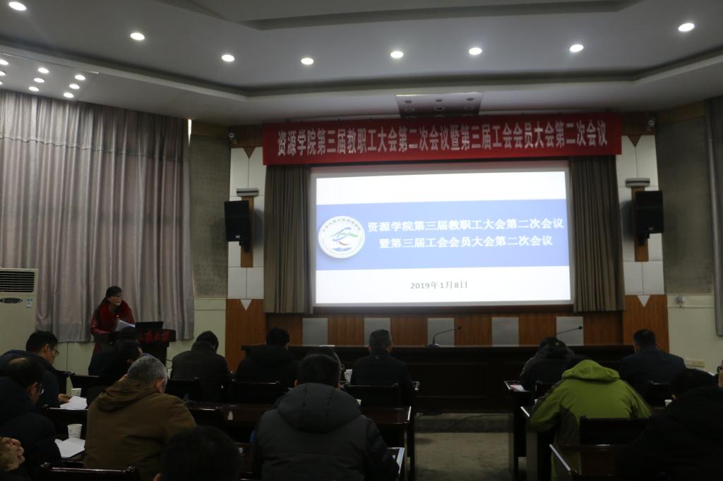 1月8日下午,beat365中文官方网站第三届教职工和工会会员大会第二次会议在八角楼报告厅召开,校党委书记何光彩,校工会副主席于荣萍、院党政班子全体成员、全院教职工参加会议。院党委副书记张建华主持会议。