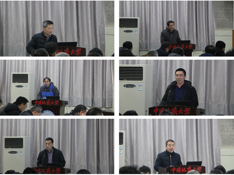 校党委书记何光彩讲话,他首先充分肯定了学院的工作,指出beat365中文官方网站班子团结一致、思路清晰、状态饱满、责任担当、举措有效,在2018年取得了较为突出的成绩,无论是科研论文、教学专著、项目经费、重大研发计划还是党建工作,都有所突破。但是也要客观的看待存在的问题,不论是生源质量、就业创业、本科教学、思想政治工作、实验室建设、师资队伍建设、制度建设和治理体系和执行力方面,都还有不小的提升空间,学院应当积极进取,努力在本科人才培养质量、盆地动力学和能源资源实验室筹建、一流学科建设和国际化建设上实现新的突破。何书记对学院下一步工作提出了几点希望和要求,一是要继续加强党的建设,积极发挥党组织推动发展、服务群众、凝聚人心、促进和谐的主体作用;二是要狠抓工作落实,坚决反对“四风”,务求实效;三是要树立底线思维,坚持问题导向、目标导向,强化危机意识、担当意识,号召全体教职工在新时代要有新作为新担当,努力为学院和学校建设发展贡献力量。