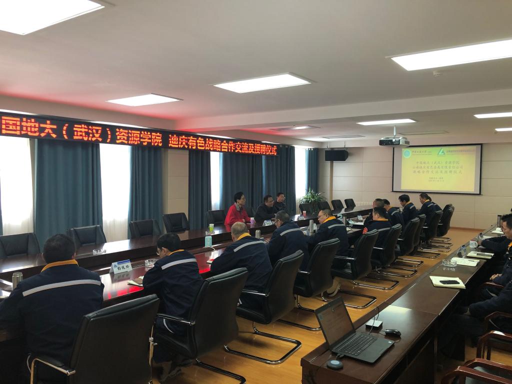为加强产学研合作,促进协同发展,实现“优势互补,资源共享,共谋发展”的目标, 5月13日,我院与迪庆有色签订校企战略合作协议并举行“普朗铜矿实践教学与创新人才培养基地”挂牌仪式。云南迪庆有色金属有限责任公司(以下简称迪庆有色)总经理李剡兵、党委副书记曹宇、副总经理吴道雍,beat365中文官方网站党委书记李宇凯、资源科学与工程系支部书记孙华山等出席了会议。会议由曹宇主持。