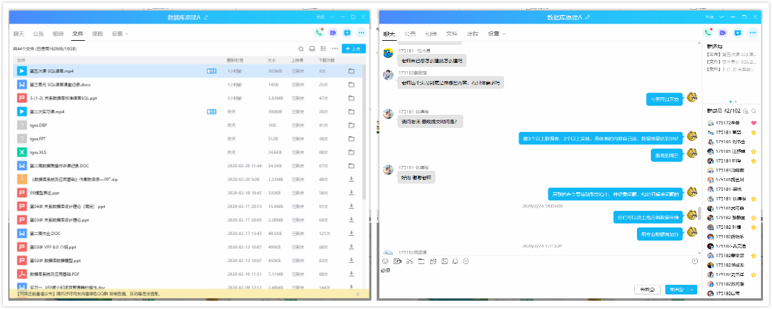 2月10日周一开学,我教授的本科生课程《数据库原理》也随之在线上开课,每周一下午、每周二和周四的上午是该课程的线上教学时间。本学期,共有60人选修和4人重修了这门课。截至到目前,我已完成近50天的网课教学,其中包括前期的准备工作——网络教学平台选择和学习、网络上课教学资源准备、各种辅助工具软件收集安装和熟悉,以及为期六周的线上课程教学,下面我将这段时间对网络教学的思考、经验与感悟分享给大家,希望能在交流中实现共同进步。