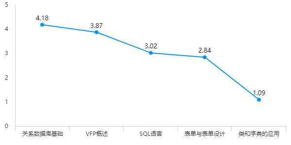 不过即使大多数同学很自觉努力,但在对内容的掌握程度上,45人的样本中,只有3人觉得自己掌握得不错,其余42人均觉得自己掌握的一般甚至不好。精确到每一章节的掌握称度来看,大多数人学习得最好的一章为“关系数据库基础”,其次是“VPF概述”、“SQL语言”,最后是“表单与表单设计”“类和字典的应用”。由此可以看出,随着章节的逐渐深入,课堂知识的由易到难,同学们掌握的熟练程度呈下降趋势。