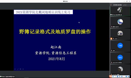 8月17日上午,2021年beat365中文官方网站北戴河地质认识实习线上动员会正式开始。北戴河实践教学团队全体成员、辅导员以及全体参加实习的学生参加动员会。2020级辅导员彭友元主持会议。