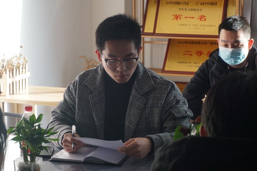 沈传波总结发言。他表示,面对繁重的课业及期末季,各位同学要化压力为动力,以饱满的热情拥抱生活,并充分依托学院的导师制,充分开展互联网+、创青春、挑战杯等双创赛事,积极参加中国石油工程设计大赛、全国油气地质大赛等重磅行业赛事,广泛开展基础科研立项,并借院领导接待日与学院领导、老师进行广泛的交流与沟通,为学院的发展贡献青春力量。