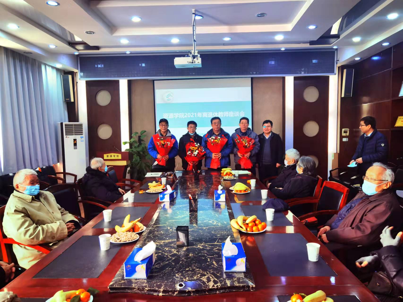 会间,特别为2021年荣休教职工举行仪式。高复阳为2021年荣休教师献花,代表学院衷心感谢老师们对学院事业发展的关心与支持,希望老师们积极参加校工会组织的各类活动,通过适度的锻炼保持身体健康,在乐享晚年生活的同时持续关注学院发展,为学院发展建言献策。他表示,学院会认真梳理研究这些宝贵的意见建议,并结合到学院事业发展的各方面工作中,认真落实立德树人根本任务,持续提升科教实力,高水平推进学科建设,加强资源特色文化育人,教育引导全体师生加快高水平研究型学院建设步伐,早日建成资源能源领域国际知名的人才培养基地和科学研究中心。