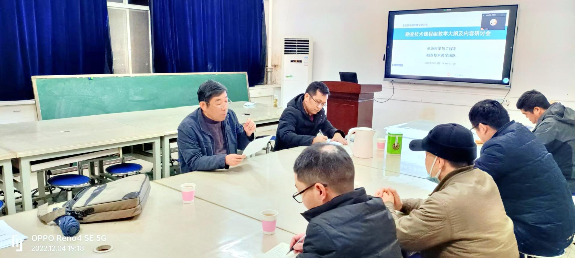 随后,“矿产综合勘查技术”课程副负责人李艳军副教授介绍了该课程历史沿革及当前的教学目标、实现途径、教学大纲、教学内容和前期教学成果,着重介绍了目前新建立的物探和化探实习基地、实习内容及教学效果等情况。他表示,新一轮专业培养计划将“勘查地球化学”和“勘查地球物理”等课程内容并入本课程,“矿产综合勘查技术”课程要求讲授的内容增加,细节的把握难度增大,教学大纲必须进行调整,并提出了教学内容和实习内容调整方式、课时安排等初步方案供大家讨论。同时,提出了该课程与“矿产勘查理论与方法”课程的内容衔接及区分点、缺少物探实习的磁法和电法反演软件、需进一步补充地物化实习内容等亟需解决的问题。参会老师积极发言,会场气氛活跃,张晓军、谭俊、付乐兵、张可清等老师从不同角度针对教学大纲和内容提出了调整意见或解决方案。