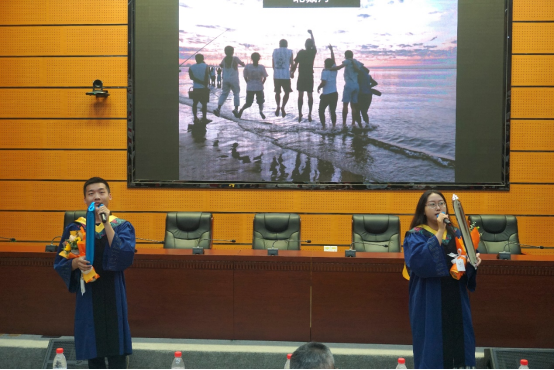 副院长朱红涛代表学院为毕业生赠送纪念品,希望大家带着学院美好真挚的祝福踏上新的征程。