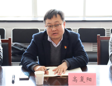 观看学校专题宣传片后,高复阳介绍学校和学院基本情况。