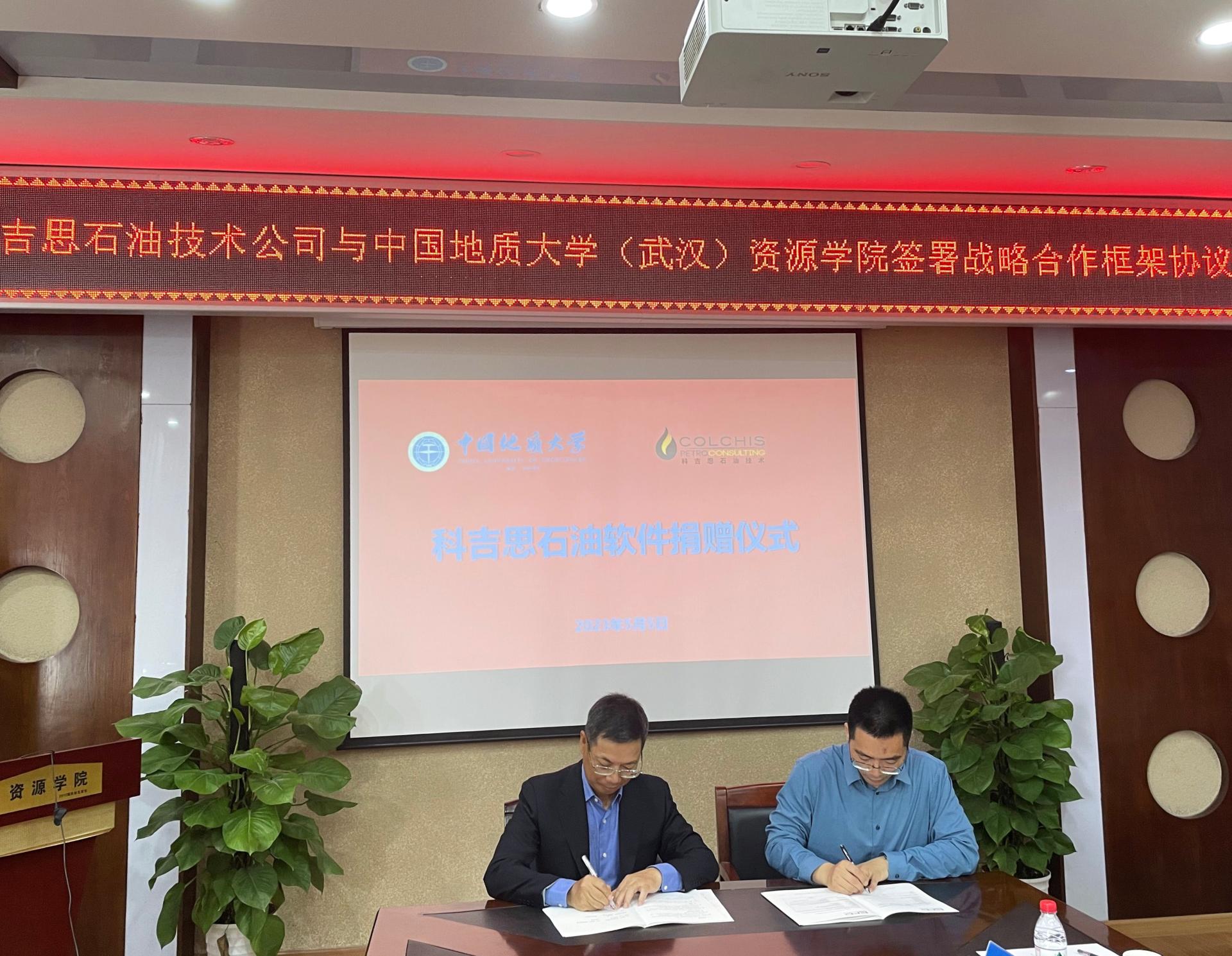 王格平代表科吉思石油技术公司向学院捐赠tNavigator精细油气藏智能高效建模数模一体化、ColchisFM智能油藏地球物理正演软件及许可,与严德天签署战略合作协议,共同为联合实验室揭牌。双方通过战略合作,发挥产学研资源优势,推动tNavigator、ColchisFM软件在学校能源开发领域的科研及教学应用。
