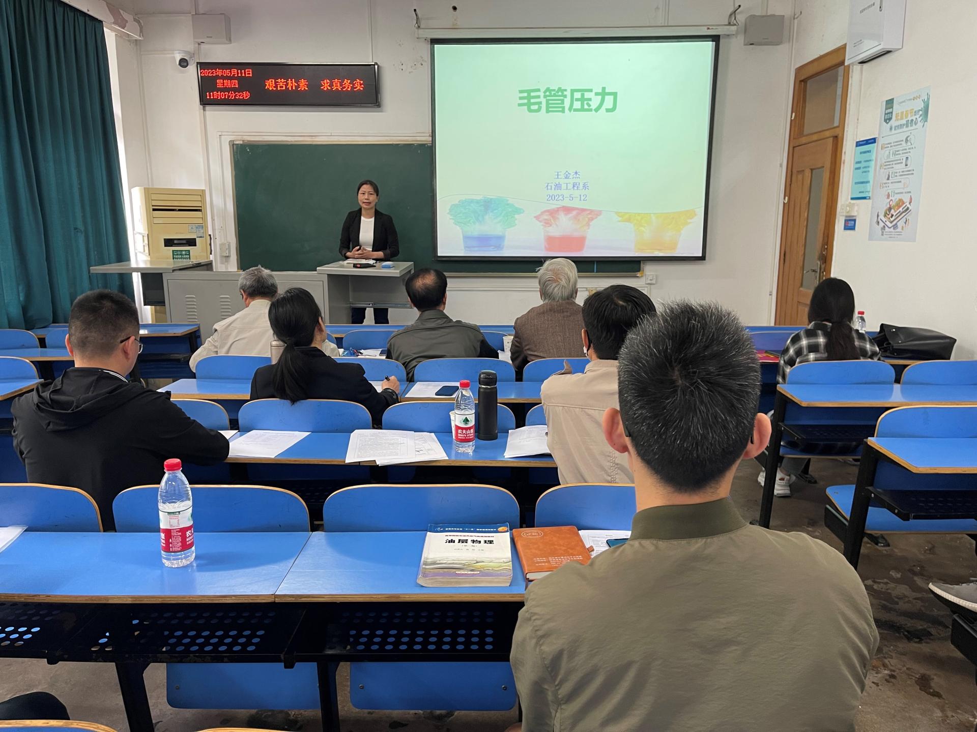 朱钢添老师讲述了《石油及天然气地质学》中的油气成因概述与有机成因,逻辑清晰、多媒体规范。他由专业关键词在数据库搜索的文献数据指出学校在相关专业领域做出了重要的工作,提升学生对专业的认同。孟庆帮老师用清晰的示意图和公式推导讲解了难度较大的《油气层物理学》中的单组分体系的相态特征,重难点突出,课程具有层次性。伏海蛟老师在《普通地质学》的断层的定义与分类讲述中融入了大量的地质现场图片,使学生获得直接的感受,理论与实际相结合。他讲解了我国古代诗人笔下的地质现象,两者结合引起学生对地质的学习兴趣。付乐兵老师在《矿产勘查理论与方法》的矿床勘查与储量估算的讲述中通过回顾上节课、提问等方式帮学生梳理知识,启发思维,他在介绍课程起源时提到我院赵鹏大院士是在国内建立起这门课的第一人,激发学生的专业认同和自豪感。王维老师从俄乌冲突导致的欧洲能源危机导入《沉积相与沉积环境》的扇三角洲体系的学习,从玛湖砾岩油田勘探获得国家科技奖励激发学生能源报国的热情,课程生动具体、引人入胜。