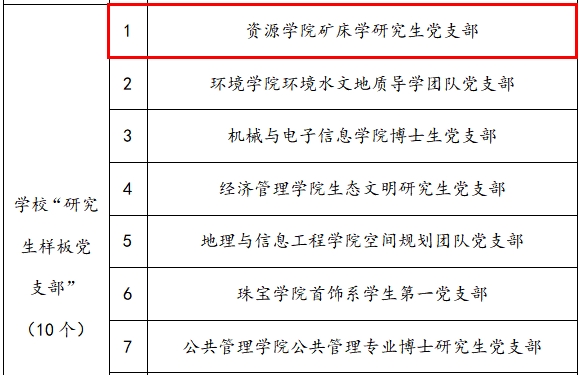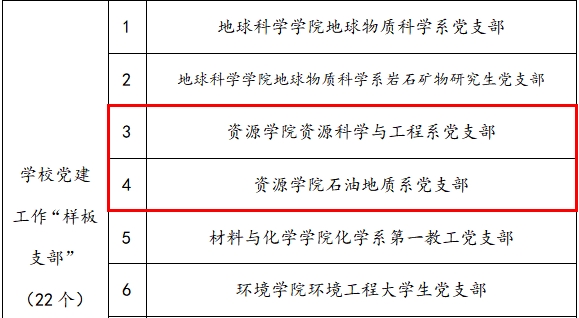 11月14日,学校党委公布了学校第一批党建“双创”工作项目验收和第二批党建“双创”工作项目培育创建结果。beat365中文官方网站党委、石油工程专业本科生党支部以突出的创建成效顺利通过学校首批党建工作“标杆分党委(党总支部)”“样板支部”项目验收;同时,有5个项目获得第二批立项培育,其中资源科学与工程系教师党支部、石油地质系教师党支部入选学校党建工作“样板支部”、矿床学研究生党支部入选“研究生样板党支部”、张启扬和万晓帆入选“研究生党员标兵”的培育创建名单。
