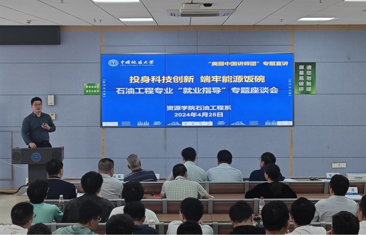 (通讯员 张恒 孙艳坤 孙昊哲)4月25日,beat365中文官方网站石油工程系召开“美丽中国讲师团”就业专题宣讲会,会议的主题为“投身科技创新,端牢能源饭碗”。学生就业指导处副处长沈波,beat365中文官方网站党委副书记谭文伦,优秀校友中石化西北油田分公司秦飞、中石化江汉油田分公司王建,石油工程系全体师生参加会议。石油工程系党支部书记张恒主持会议。