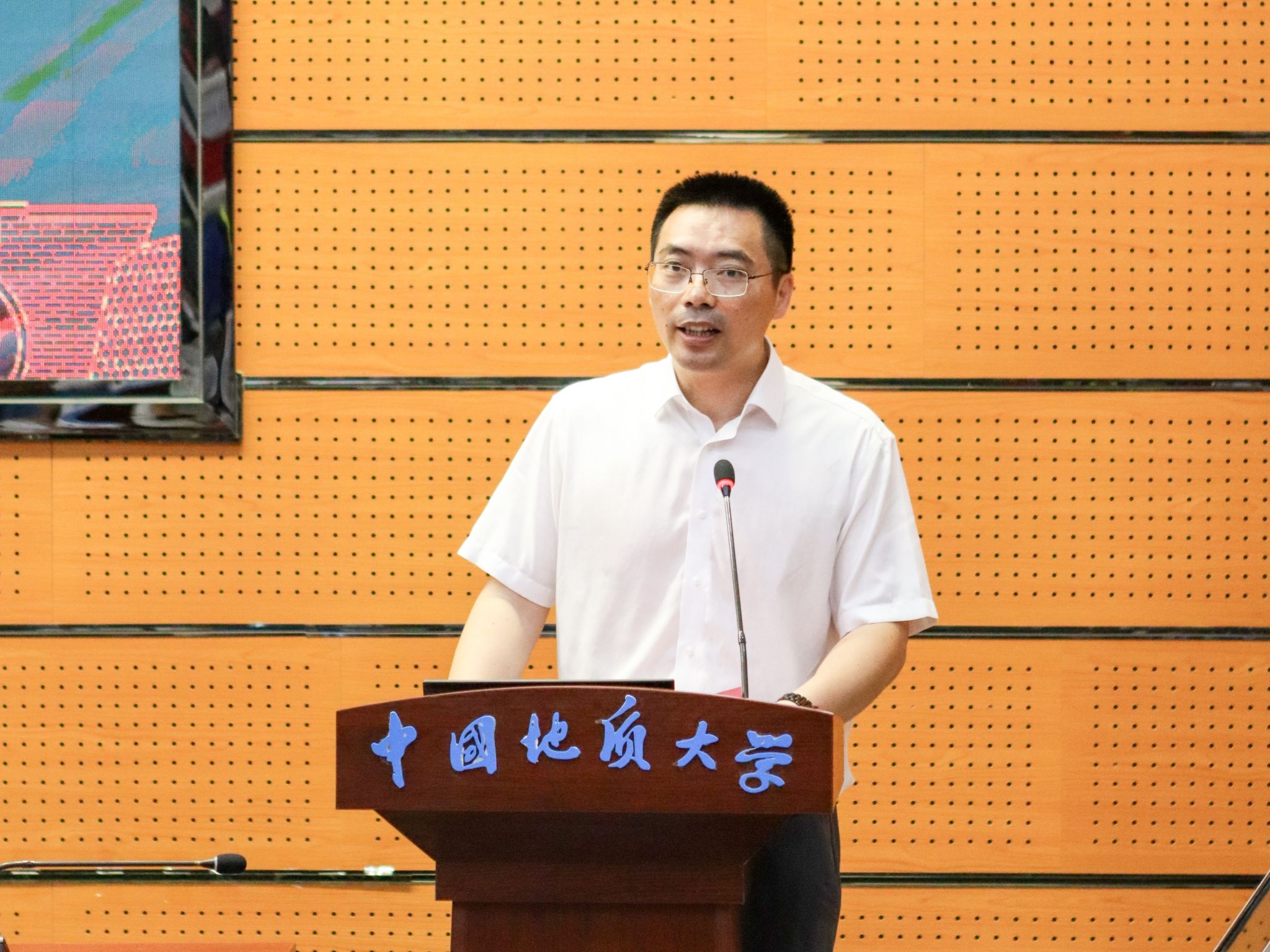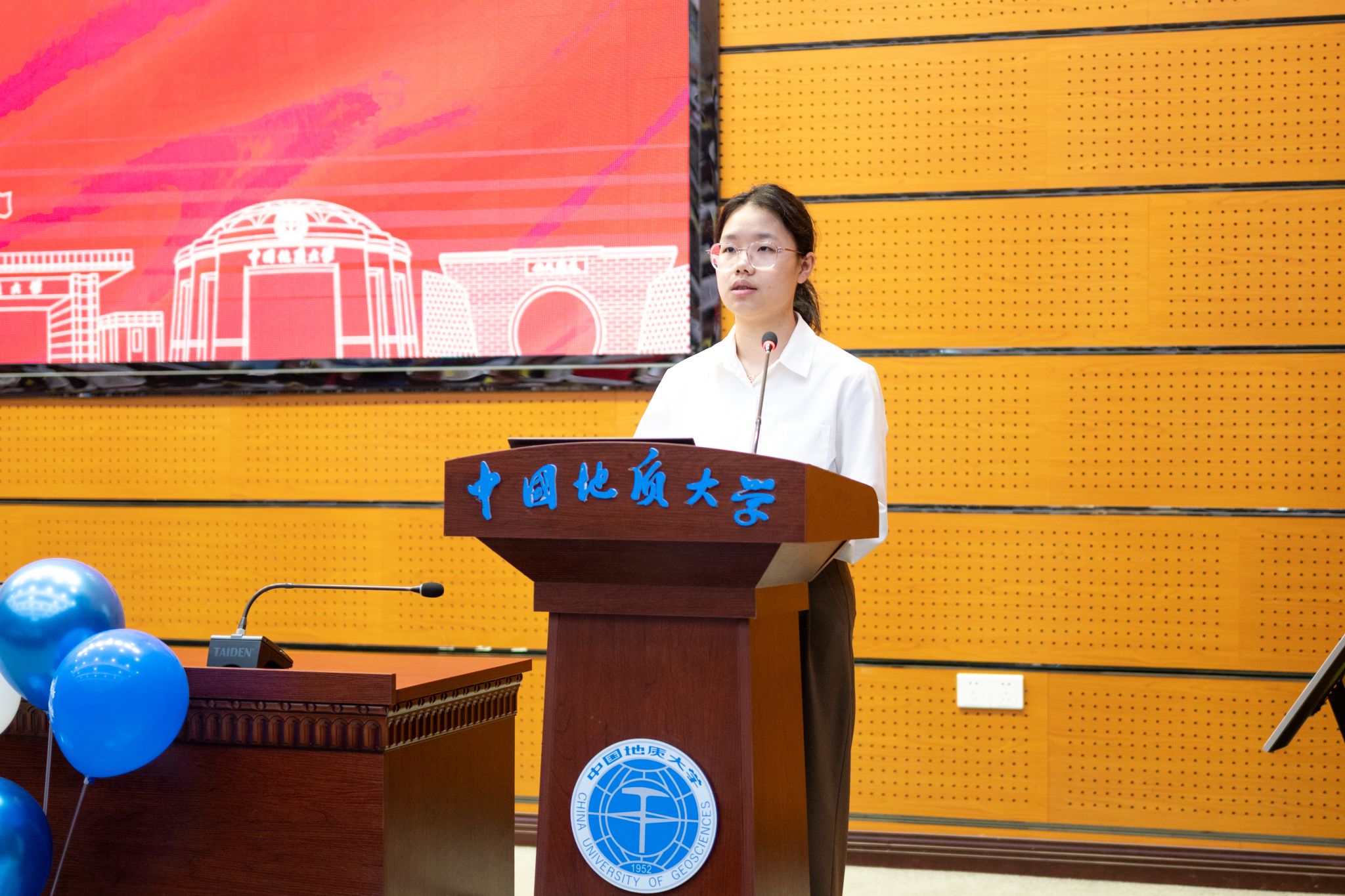 在校生代表、新任学生会执行主席余慧发言。她感慨与学长学姐们共同度过的美好校园时光,对学长学姐圆满完成学业、奔向锦绣前程表示祝贺,并表达了对他们的真切祝福和不舍之情。她说道,全体在校生会以他们为榜样,在求学路上刻苦钻研,脚踏实地,踔厉奋发,勇毅前行,争取早日成长成才,共同肩负起为beat365中文官方网站争光,为地大添彩、为国家效力的重任。