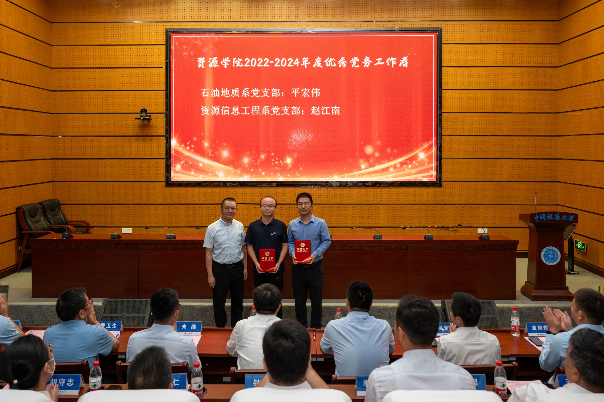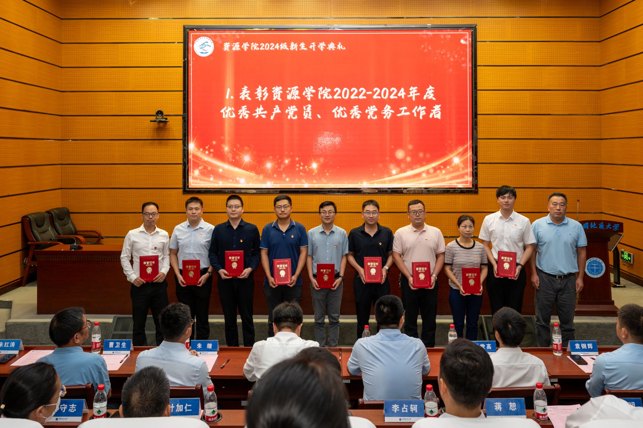副院长朱红涛、沈传波、钟志为受表彰2022-2024年度院级优秀共产党员、优秀党务工作者颁发证书。