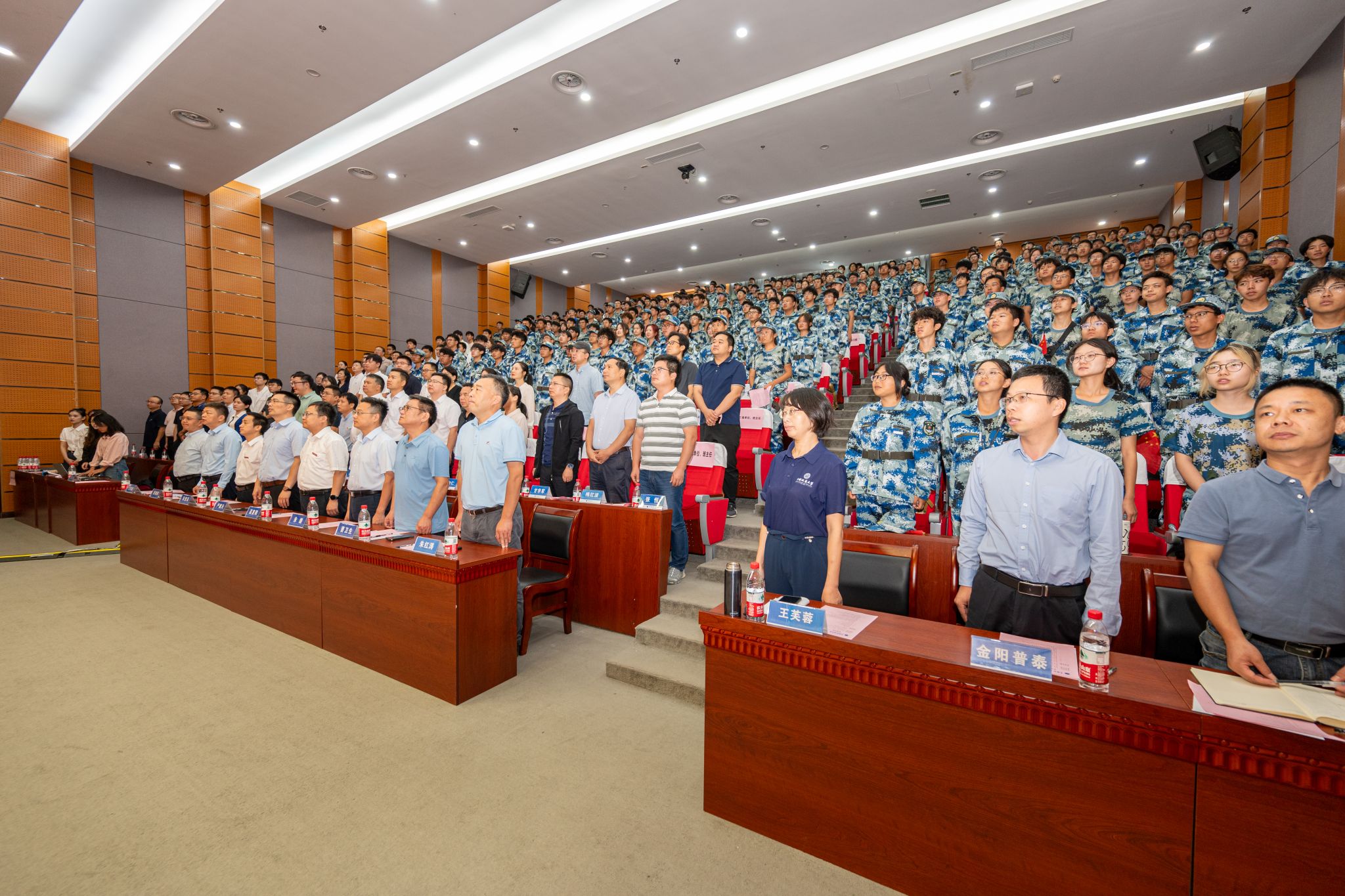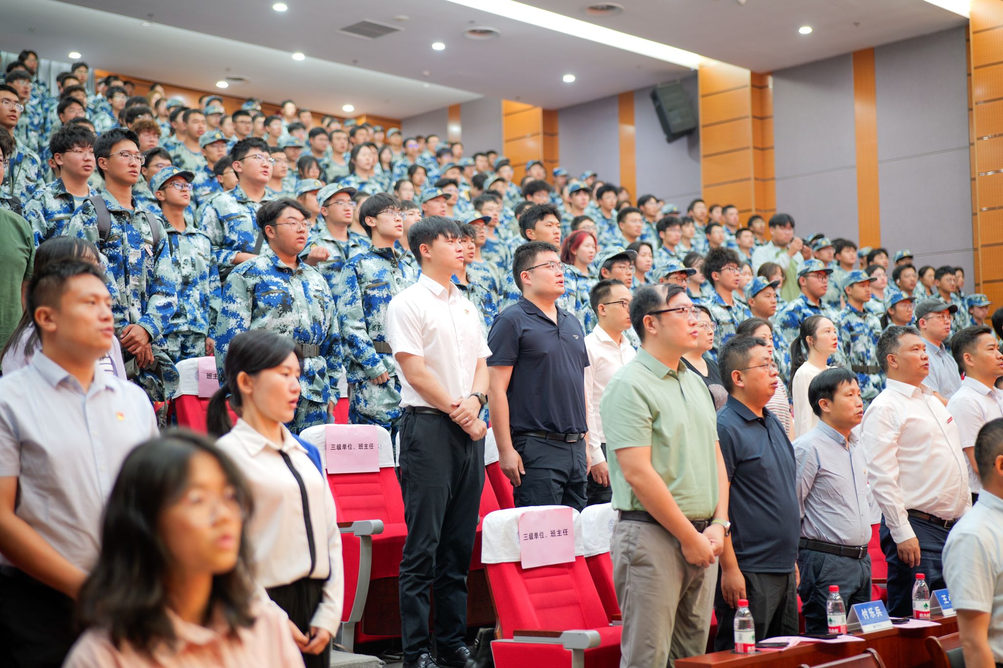 开学典礼在庄严的国歌中拉开序幕。